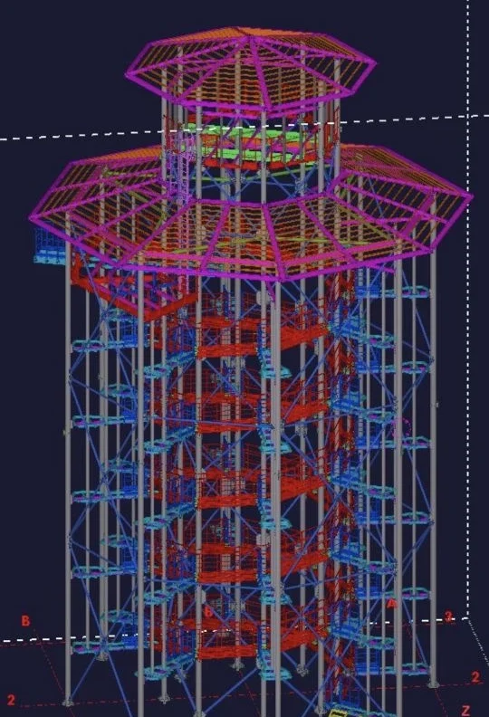 Строительство велось почти три года, на конструкцию израсходовали 72 тонны металла. Все этапы и линии страховки смонтированы, недавно завершили установку центрального 20-метрового «стакана».