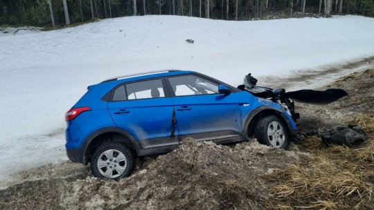 По предварительной информации ГАИ Карелии, водитель Hyundai Creta, 1955 г.р., направляясь в сторону Пряжи, выехал на полосу встречного движения, по которой двигался Toyota Land Cruiser Prado с прицепом.
