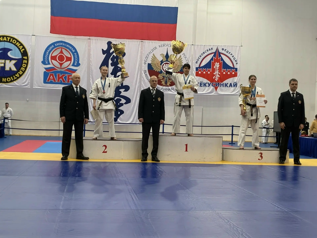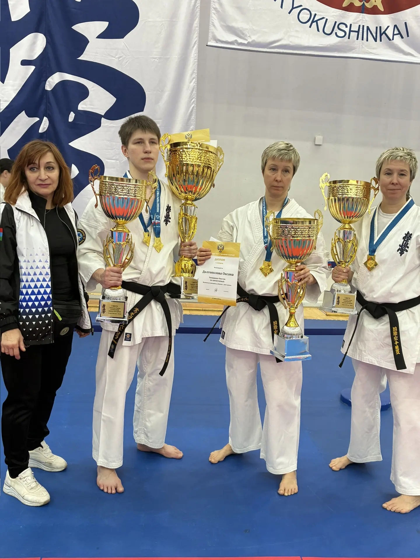 Так, в дисциплине «ката — группа» золотые медали завоевали Тимофей Петров, Жанна и Оксана Долгополовы.