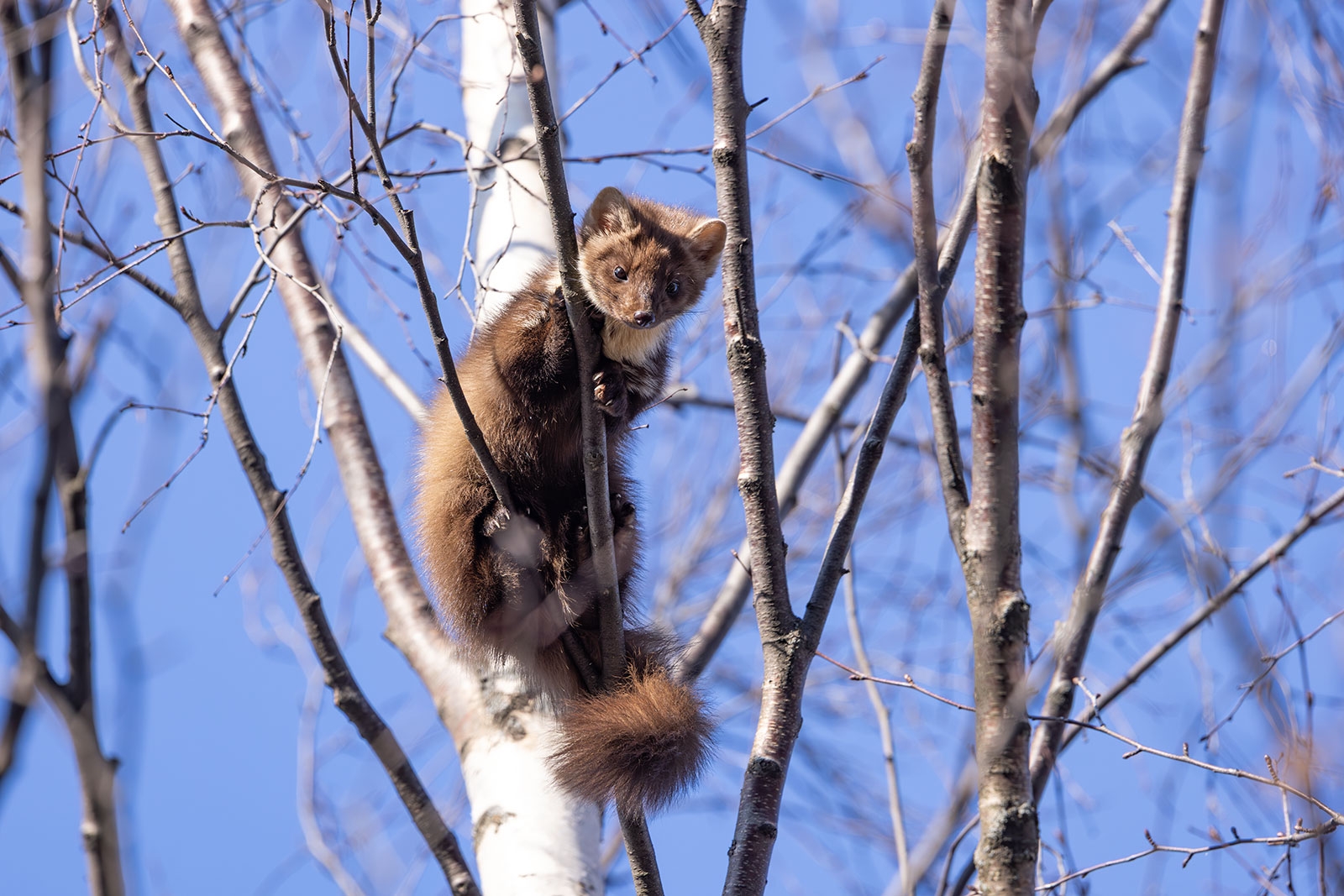 Известный фотограф Илья Тимин поймал в кадр молодую куницу, которая гостила в парке «Ямка» среди жилых домов «Речка». Фотографии он опубликовал на своей личной странице в соцсети.
