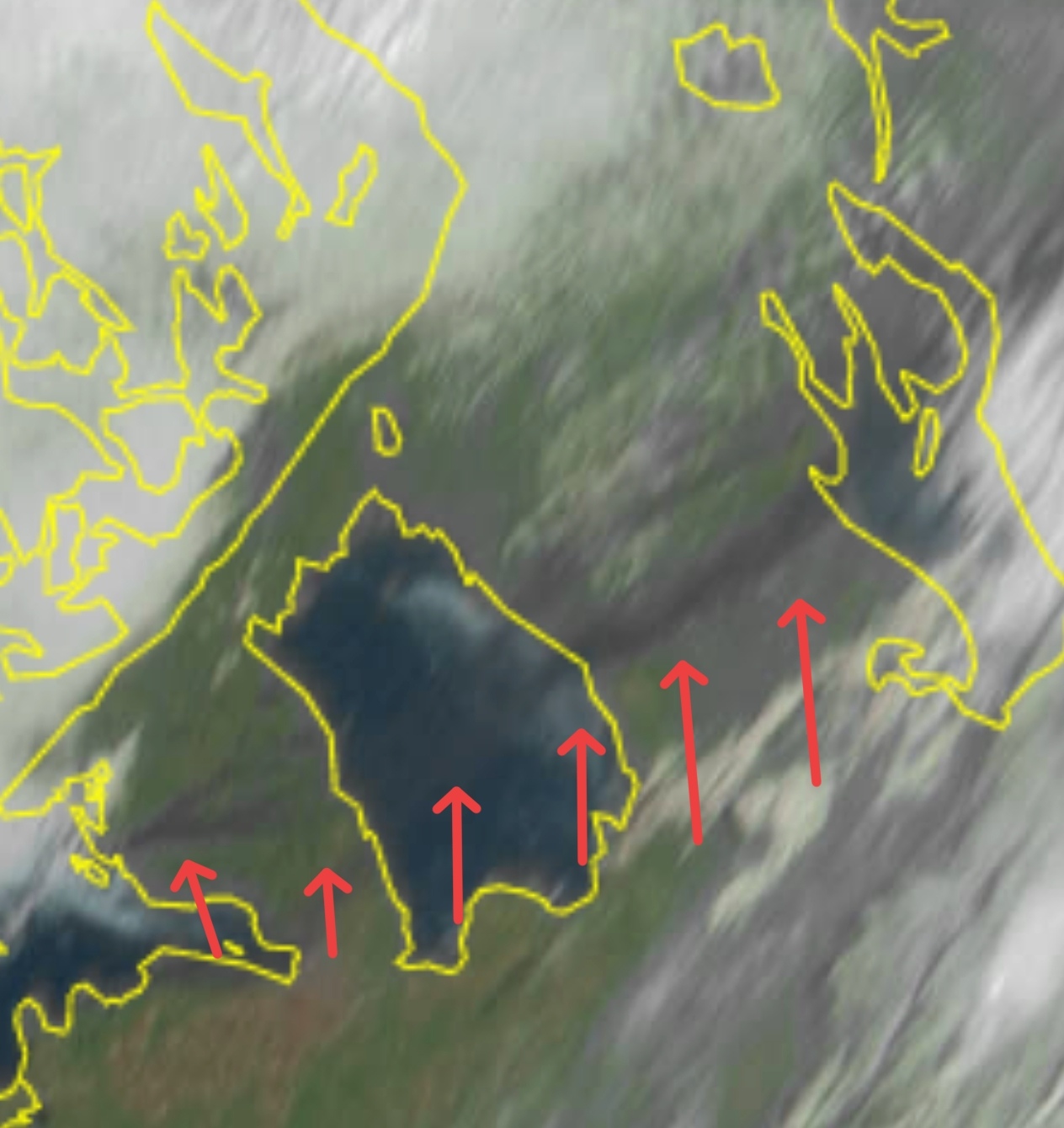 Источник разместил видео со стелющимся дымом и карту, где отмечено направление его движения.