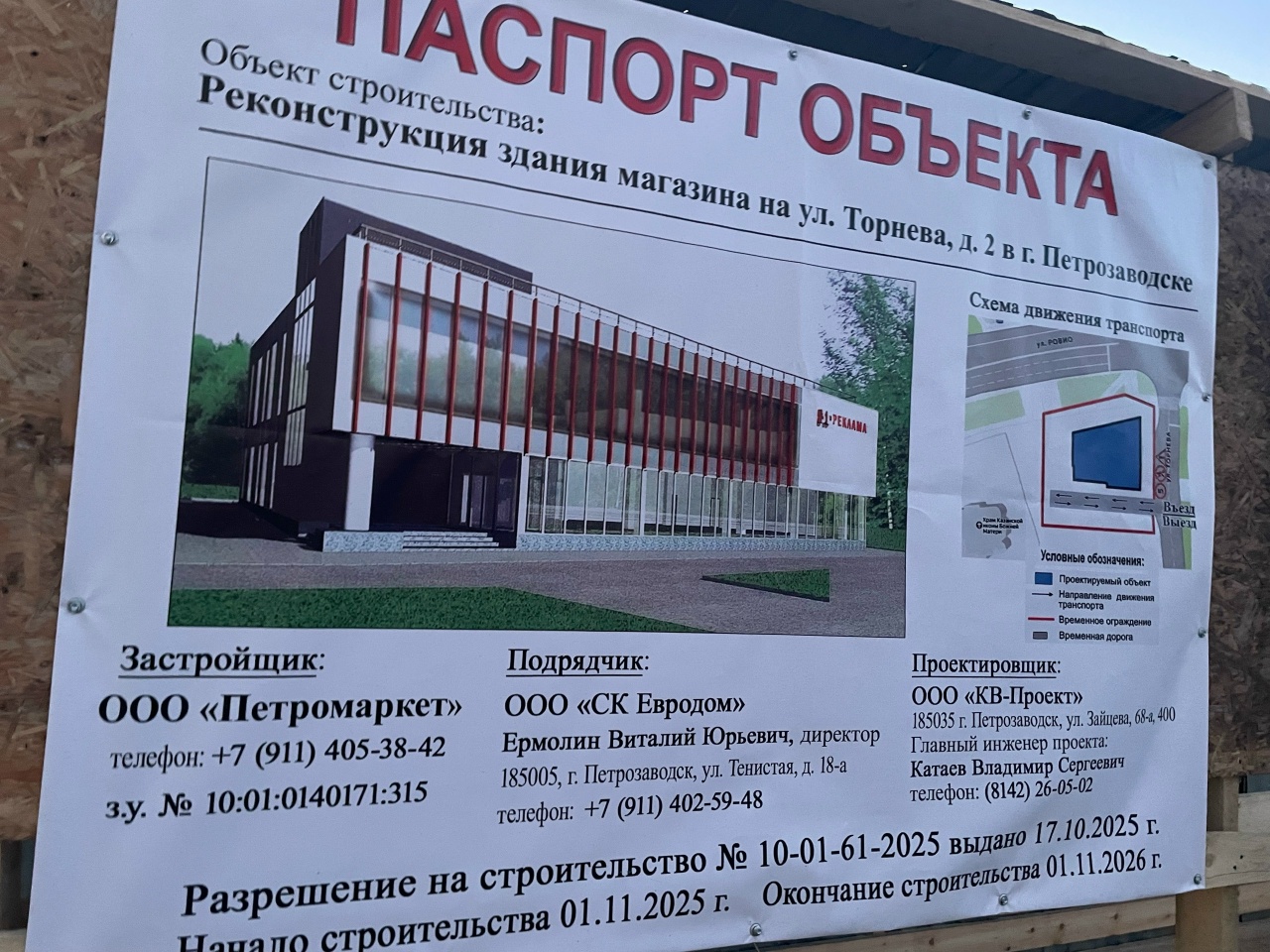 Застройщик планирует возвести объект к 1 ноября текущего года. Дата начала строительства указана — 1 ноября прошлого года. При этом работы на объекте начались лишь на прошлой неделе, примерно в 20-х числах марта.