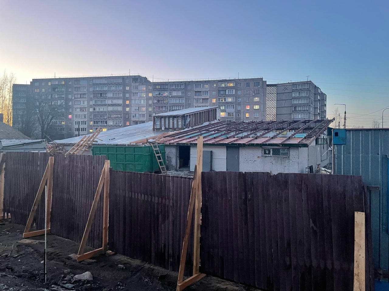 Вокруг павильона уже установили специальные строительные ограждения. Начались демонтажные работы.