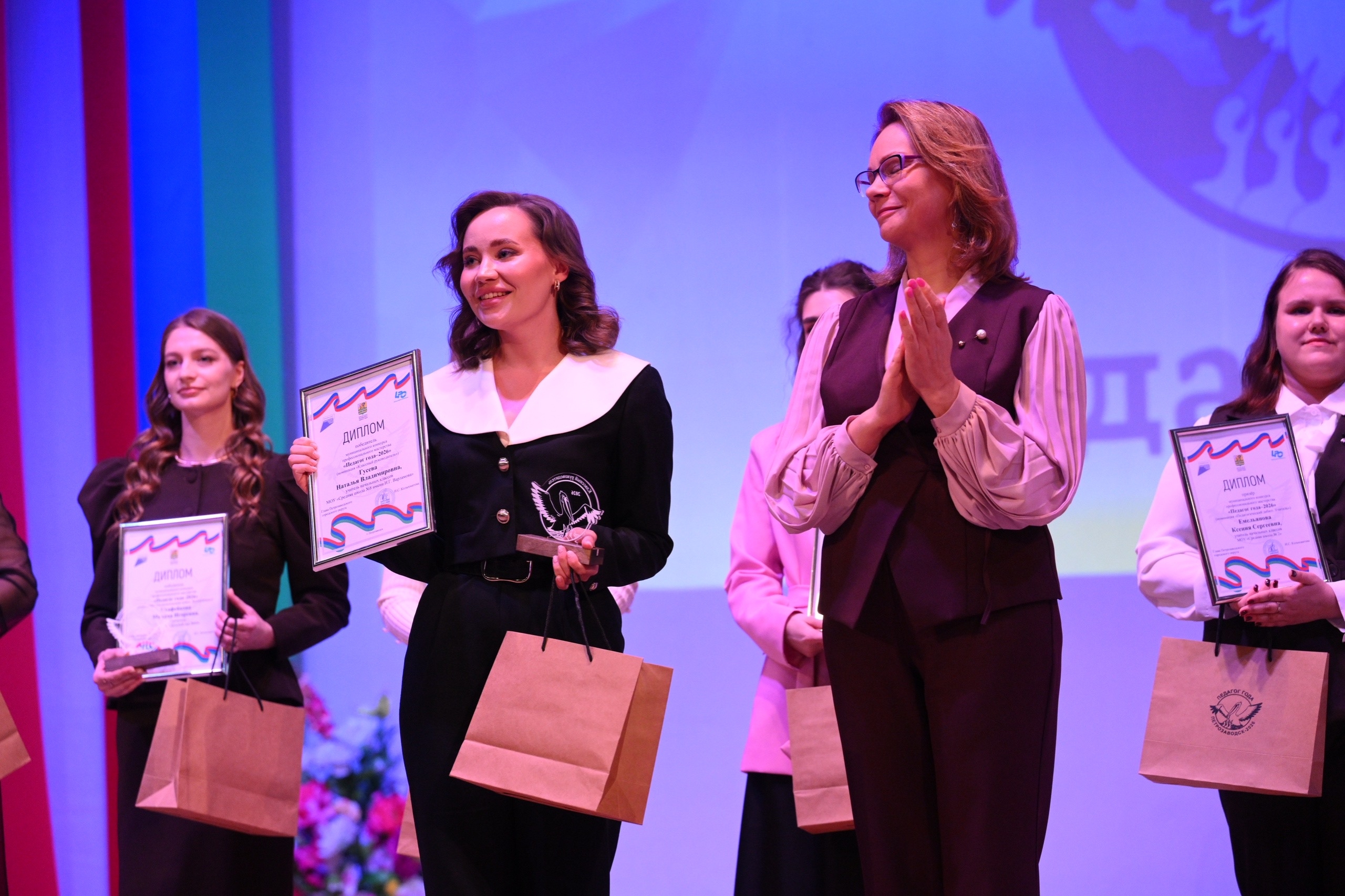 В Петрозаводске подвели итоги 34-го городского конкурса «Педагог года — 2026». В нем участвовал 51 педагог из школ, детских садов, спортшкол и школ искусств. Соревнования прошли в семи номинациях. Победителями стали: Маргарита Талай (школа №27) и Милана Стафейкова (детсад №64) — в «Педагогическом дебюте», Наталья Гусева (школа №8) — как лучший классный руководитель, Ольга Романова (музыкальная школа им. Свиридова) — в номинации «Преподаватель ДШИ», Иван Верстаков (школа №39) — «Детский тренер», Татьяна Шинкарчук (детсад №89) — «Специалист года», Алена Кулагина (детсад №89) — «Воспитатель года». Учителем года стала Дарья Зубова, преподаватель английского из Державинского лицея.