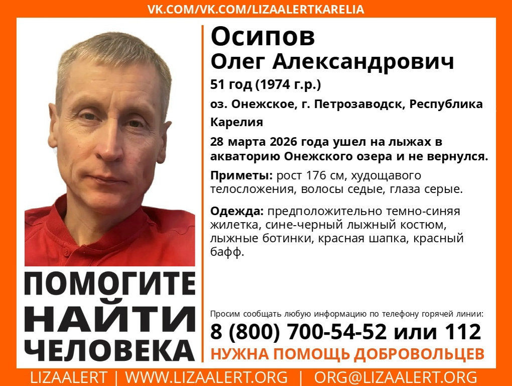 В Петрозаводске пропал 51-летний Осипов Олег Александрович.