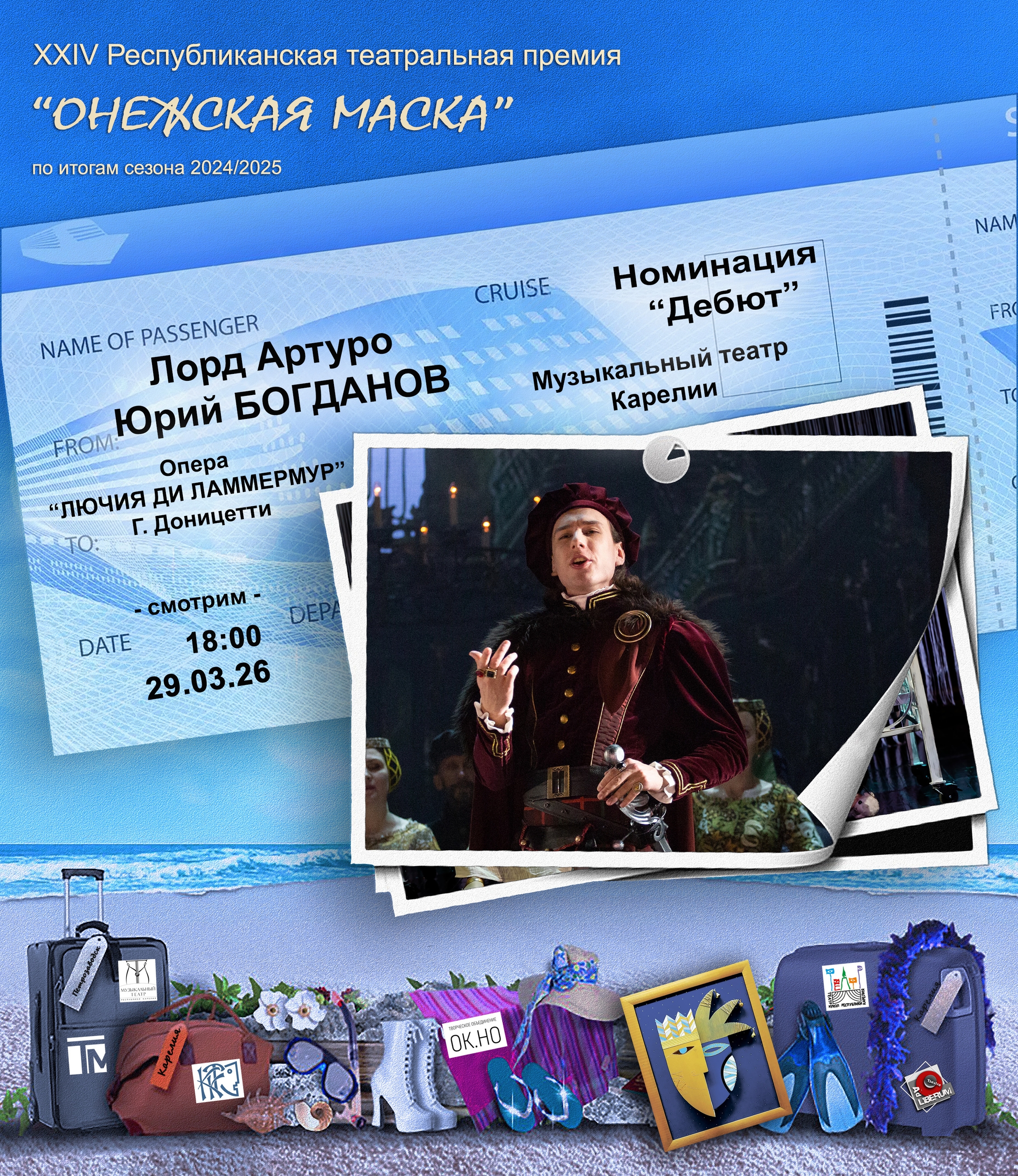 Петрозаводский музыкальный колледж рассказал, что его выпускник Юрий Богданов стал лауреатом премии «Онежская маска — 2026» в номинации «Дебют». Жюри высоко оценило его партию Артуро в опере «Лючия ди Ламмермур». Сейчас Юрий учится в консерватории имени Глазунова и служит в Музыкальном театре Карелии.