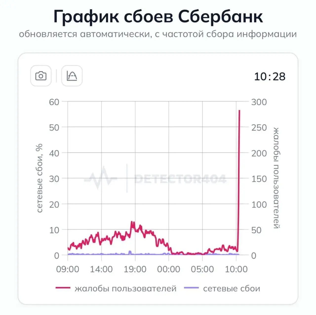 Согласно детектору отслеживания сбоев в интернете Downdetector, количество жалоб на работу мобильного приложения Сбербанка за несколько минут выросло в несколько раз. Показатель на 10.47 мск достиг 2 тысяч. Их число продолжает расти.