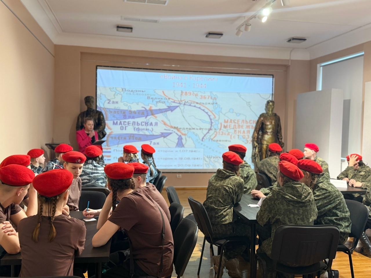 Программа выдалась насыщенной. Ребята не только проверили свои знания, но и погрузились в историю через живое общение с прошлым. Школьники приняли участие в интеллектуальной игре «Война в Карелии 1941-1944», посетили Музей Карельского фронта, где каждая экспозиция дышит подвигом. Побывали на экскурсии по улицам Беломорска и в эвакогоспитале №1438 — сейчас в этом здании располагается Центр дополнительного образования. Историю стен и судьбы бойцов участникам сбора рассказала Ирина Свиньина.