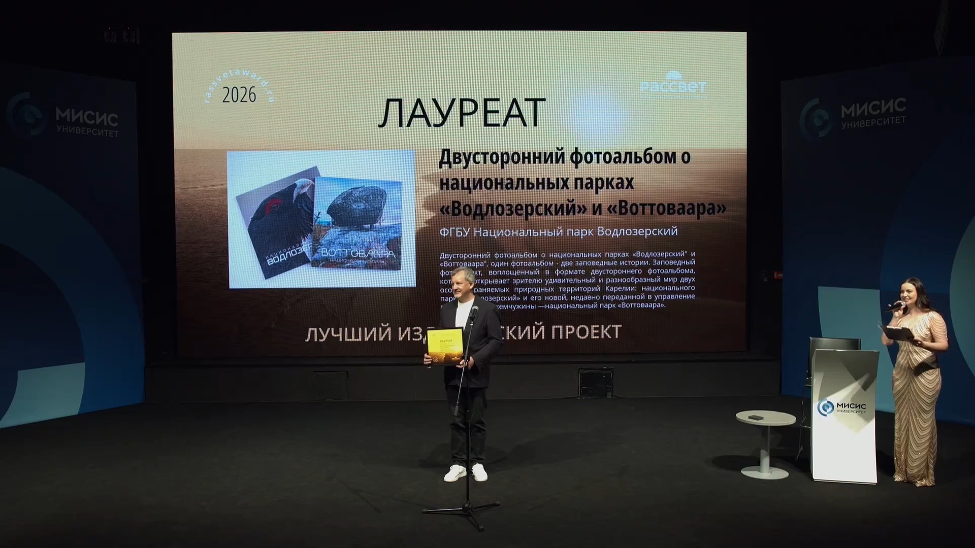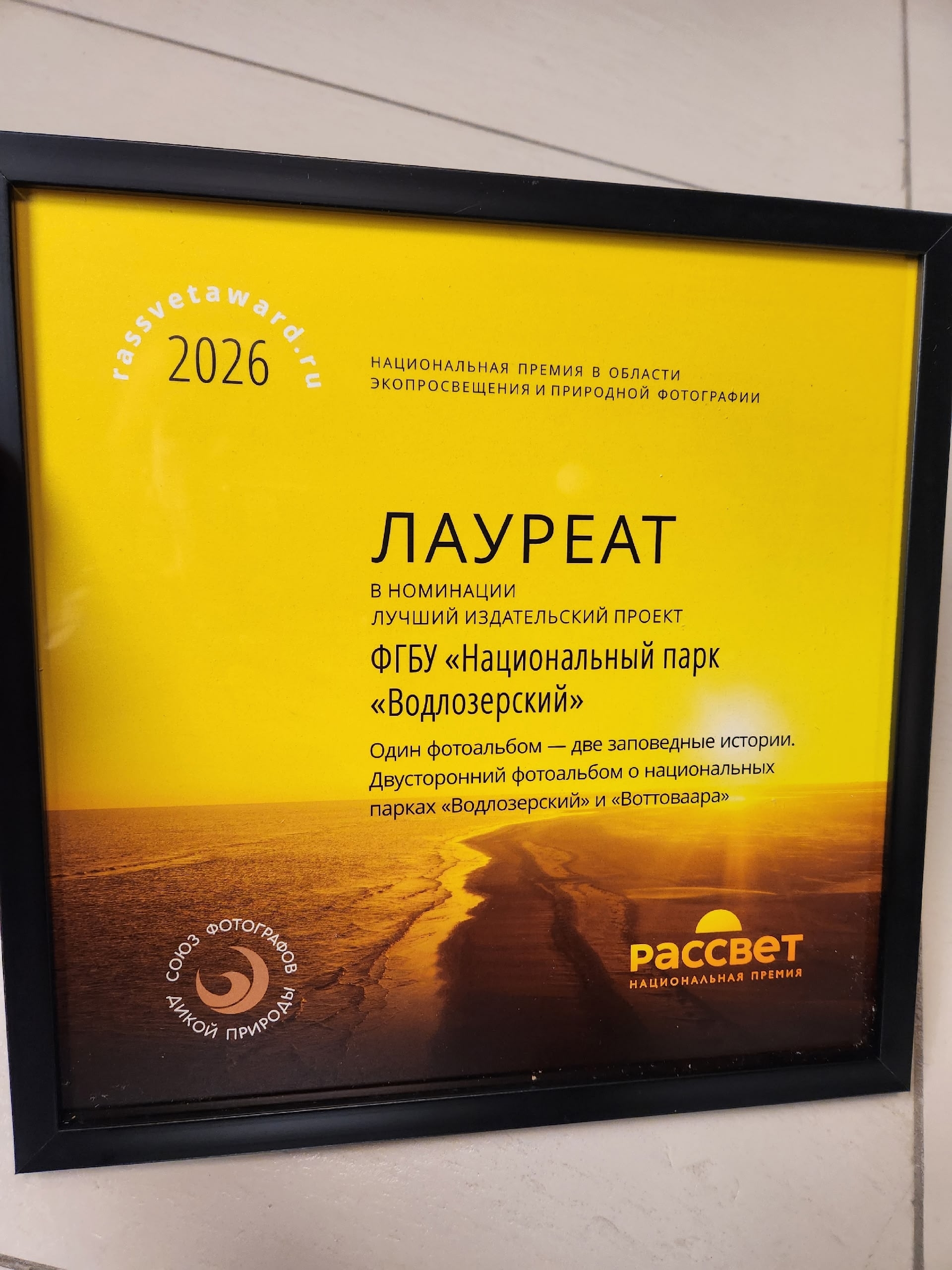 Фотоальбом о национальных парках «Водлозерский» и «Воттоваара» стал лауреатом Национальной премии «Рассвет» в номинации «Лучший издательский проект». Итоги конкурса, учрежденного «Союзом фотографов дикой природы», подвели в Москве в конце марта. В издании собраны работы более 20 фотографов-натуралистов.