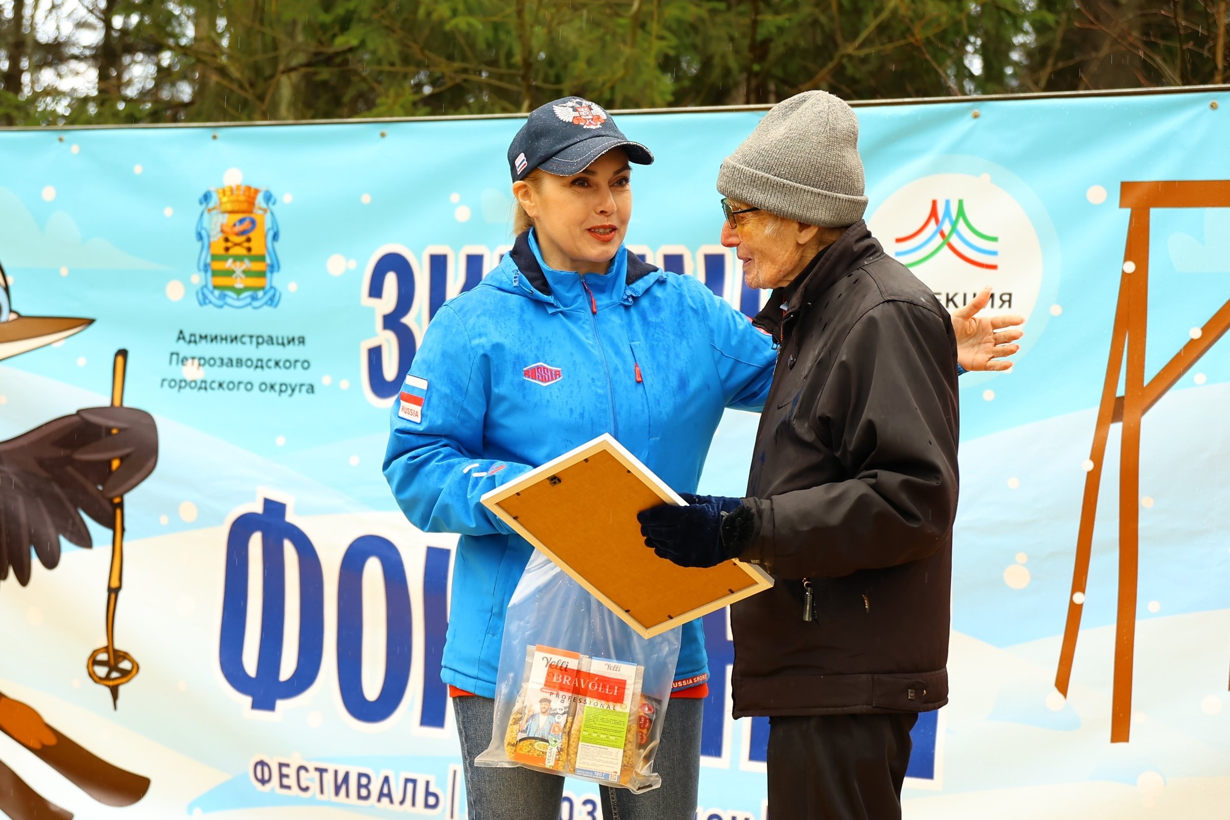 Первые поздравления главы Петрозаводска и аплодисменты участников получил Петр Татаренко. В свои 95 лет ветеран лыжни не раз отметился на пункте здоровья. Инна Сергеевна пожелала Петру Татаренко активного движения и спортивного долголетия.