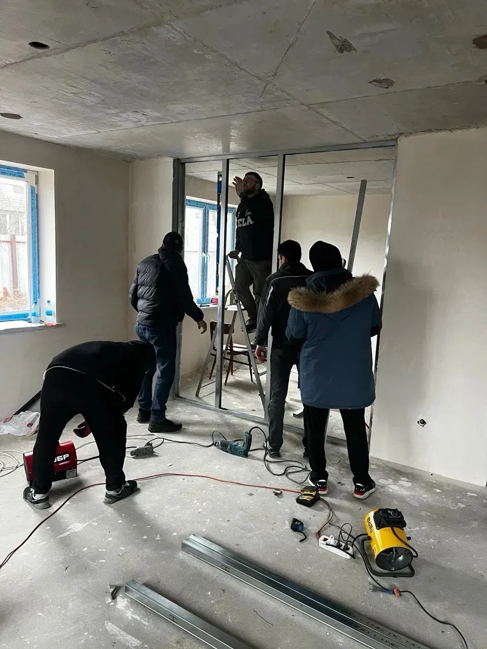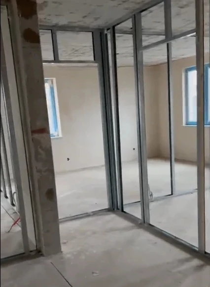Строительные работы на объекте возобновили в начале апреля. Устройство сетей и внутреннюю отделку в здании завершит местный подрядчик СП «Суворова». Строители устанавливают сейчас внутренние перегородки, а работы на первом этаже уже выполнили.