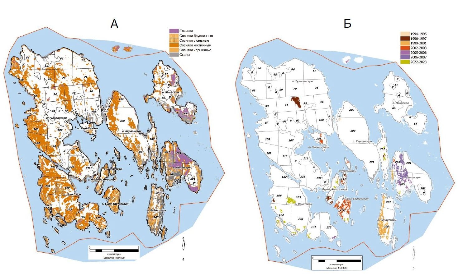 Ученые ОКНИ КарНЦ РАН получили эти данные с помощью современных методов дистанционного зондирования. Они построили цифровые пространственные модели на основе дешифрирования космических снимков разных лет, полученных спутниковыми программами Sentinel и Landsat. Обработка проводилась на базе облачной платформы Google Earth Engine.
