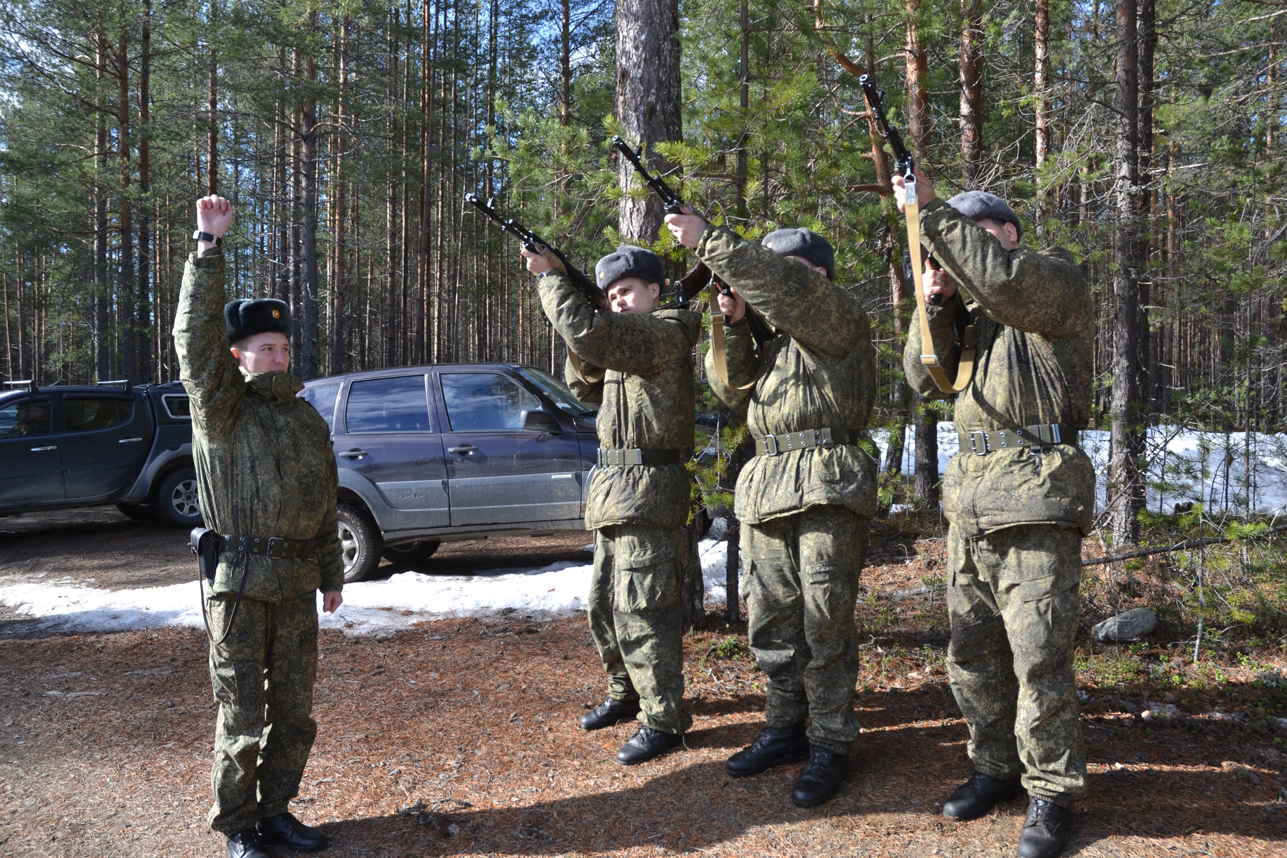 Трёхкратными залпами салютной группы отдали дань памяти погибшему. К свежей могиле возложили венки от Министерства обороны России и от главы Карелии.
