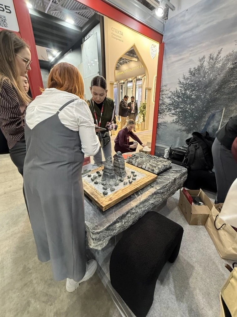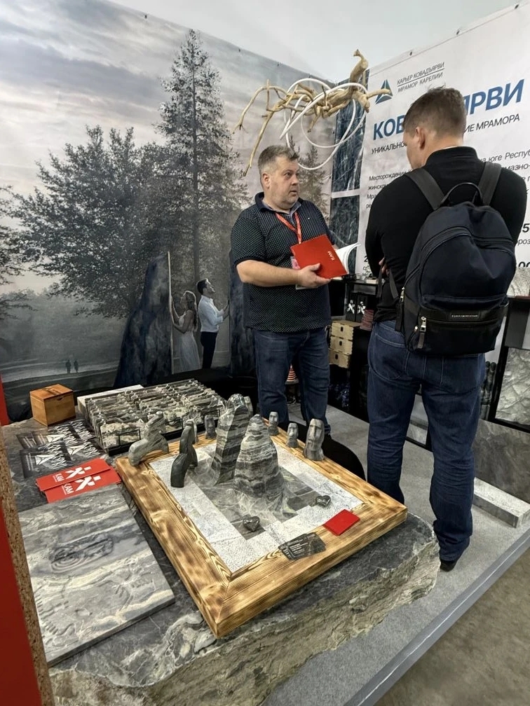 Особое внимание привлекла Республика Карелия. Помимо знаменитых гранитов, Прионежская горная компания впервые показала карельский мрамор — от интерьерных решений и сувенирной продукции до проектов благоустройства городских территорий. Миниатюрная мраморная копия проекта благоустройства Петрозаводска, созданная совместно с Торговым домом КАМ, вызвала живой интерес у профессионалов.