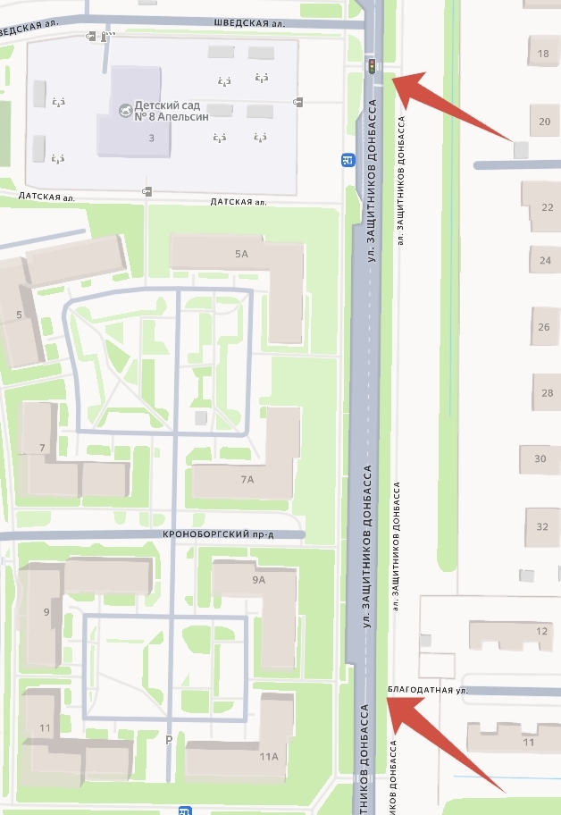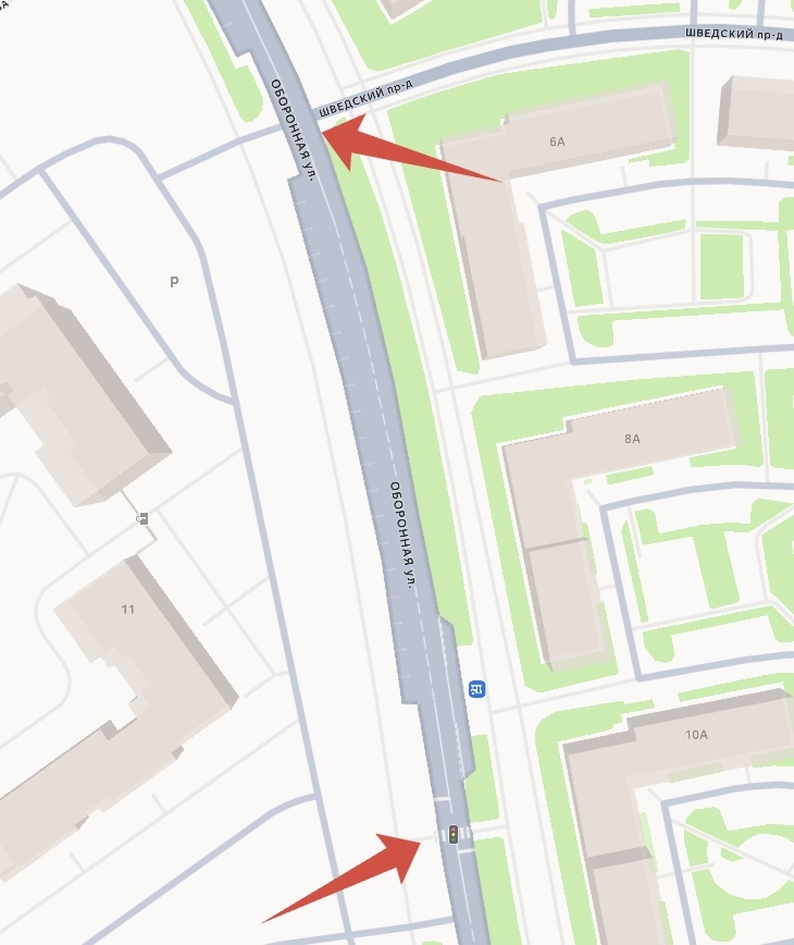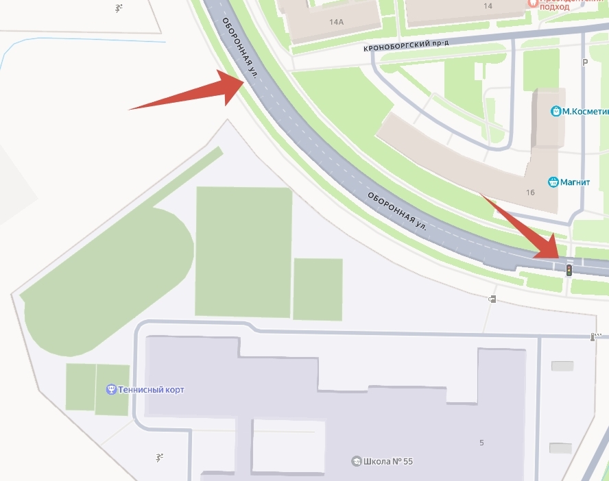 — Оборонная улица (у школы № 55 и в конце Кроноборгского проезда);