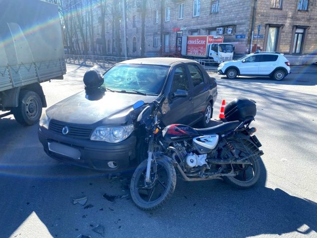Серьезное ДТП с участием мотоциклиста произошло сегодня в 10.21 на пересечении улиц Володарского и Правды. Там столкнулись автомобиль Fiat и молодой человек на мотоцикле. Фотографии опубликовали в Госавтоинспекции Петрозаводска.
