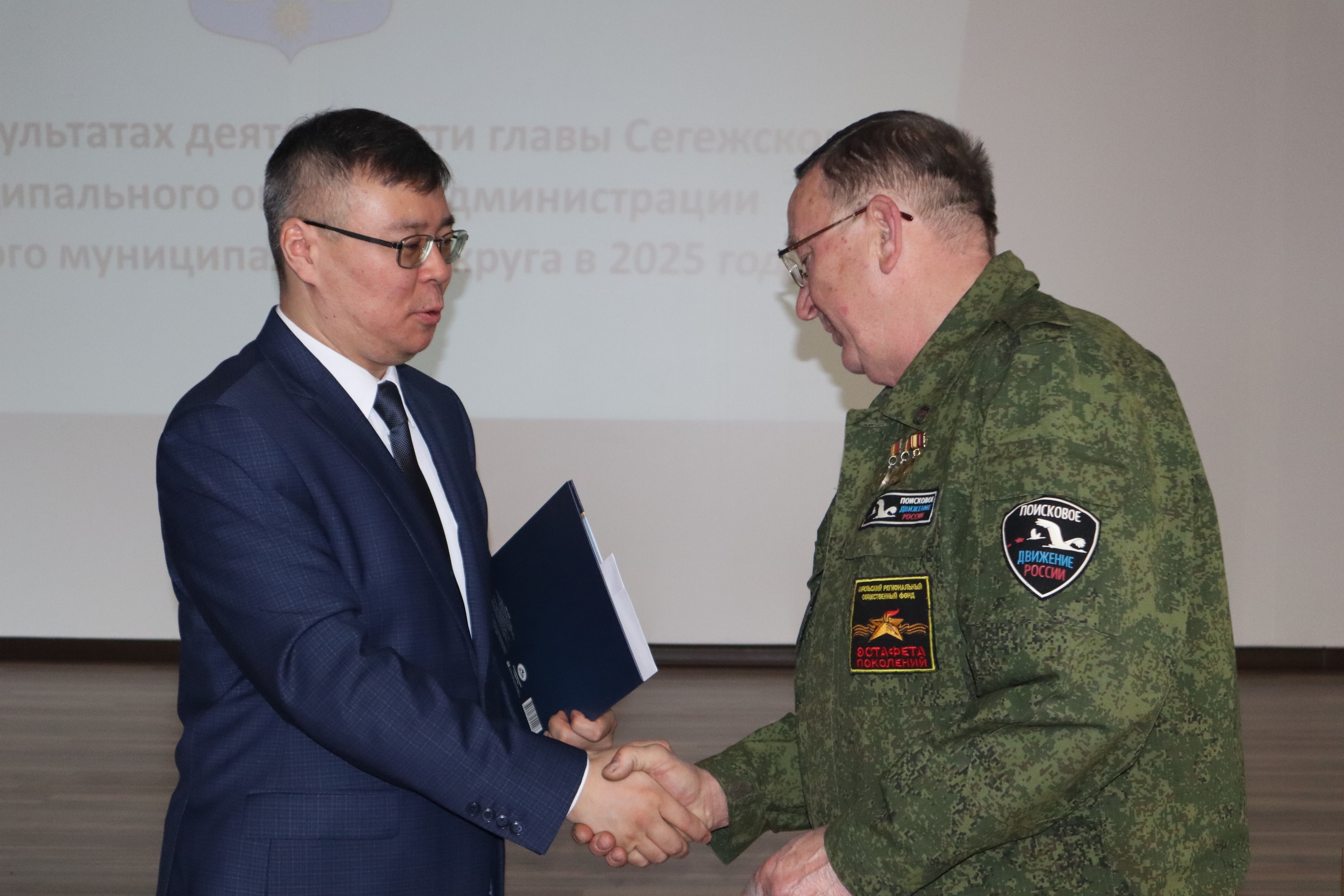 Первому главе Сегежского поселения военному по профессии Сергею Долгачеву, а также организатору поисковой деятельности отряда «Масельгская группа» Игорю Лузянину присвоили звания Почетного жителя Сегежского округа.