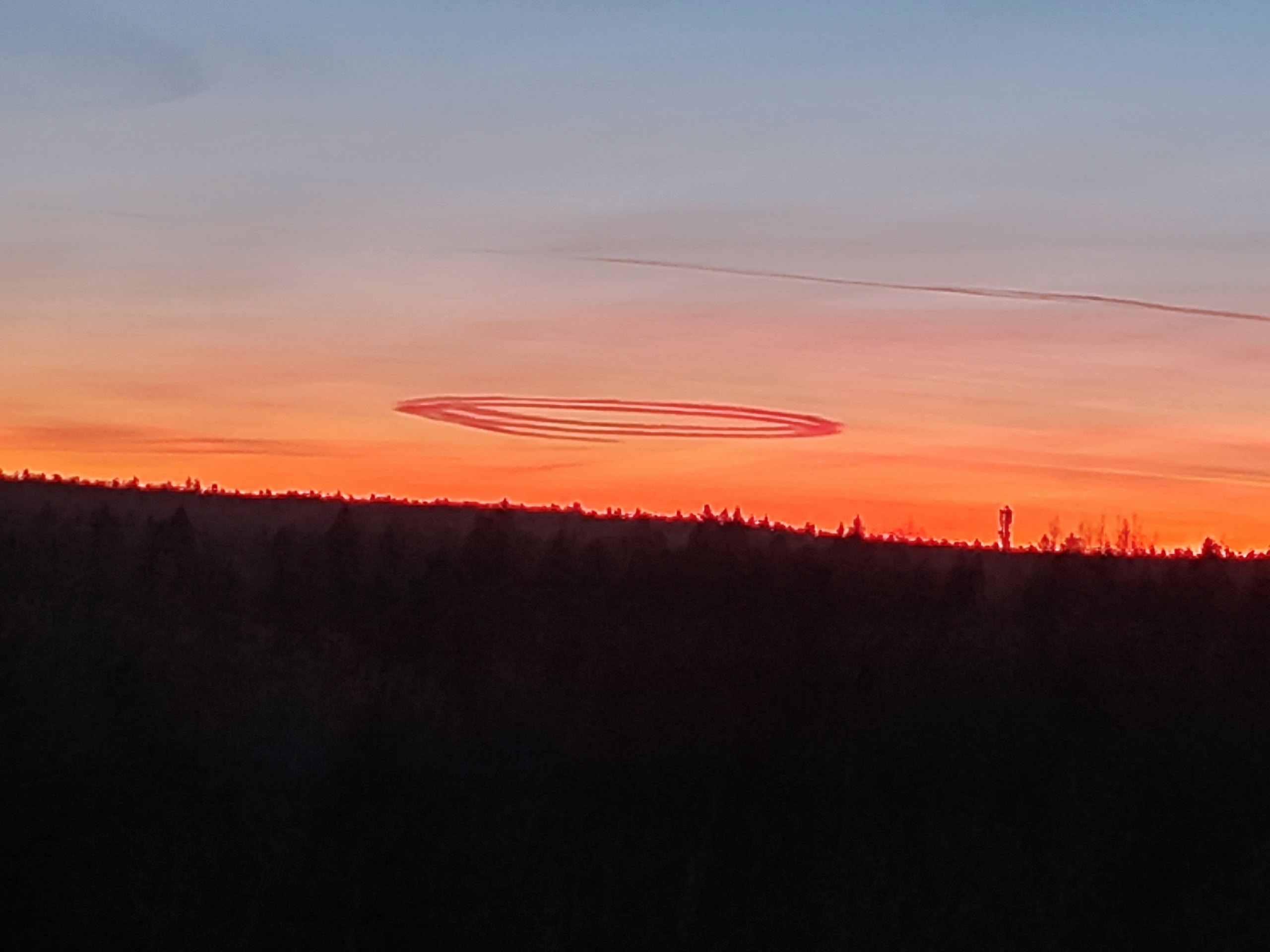 Горожане запечатлели на камеру загадочные круги над карельской столицей. Фотографии опубликовали в паблике Реальная Карелия. В соцсетях обсуждают разные версии происхождения кругов. Одни пишут, что это след от летательного аппарата, а другие — природное явление.