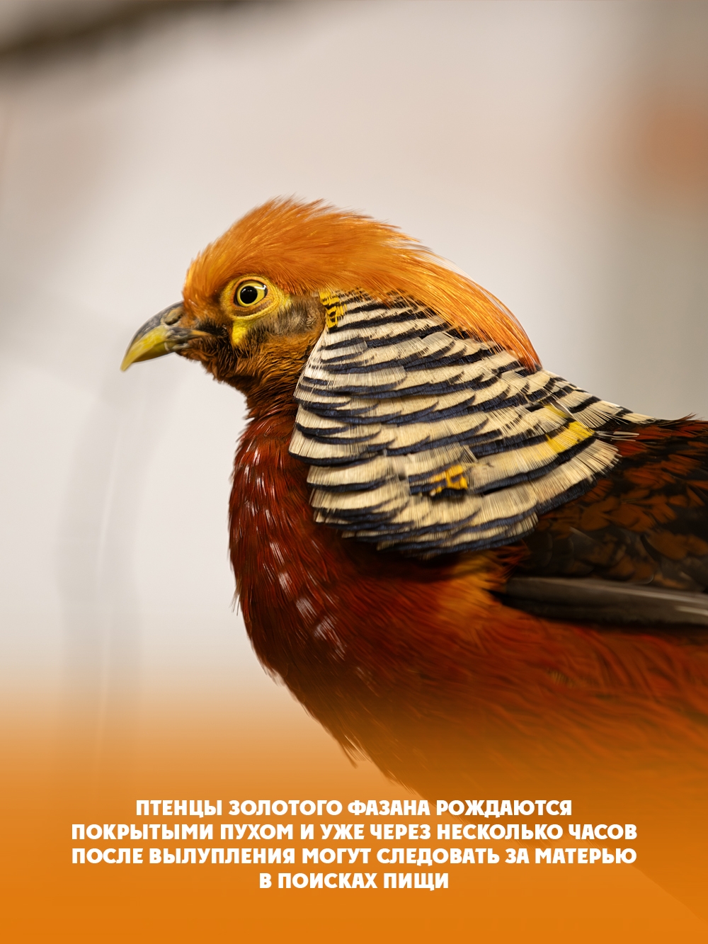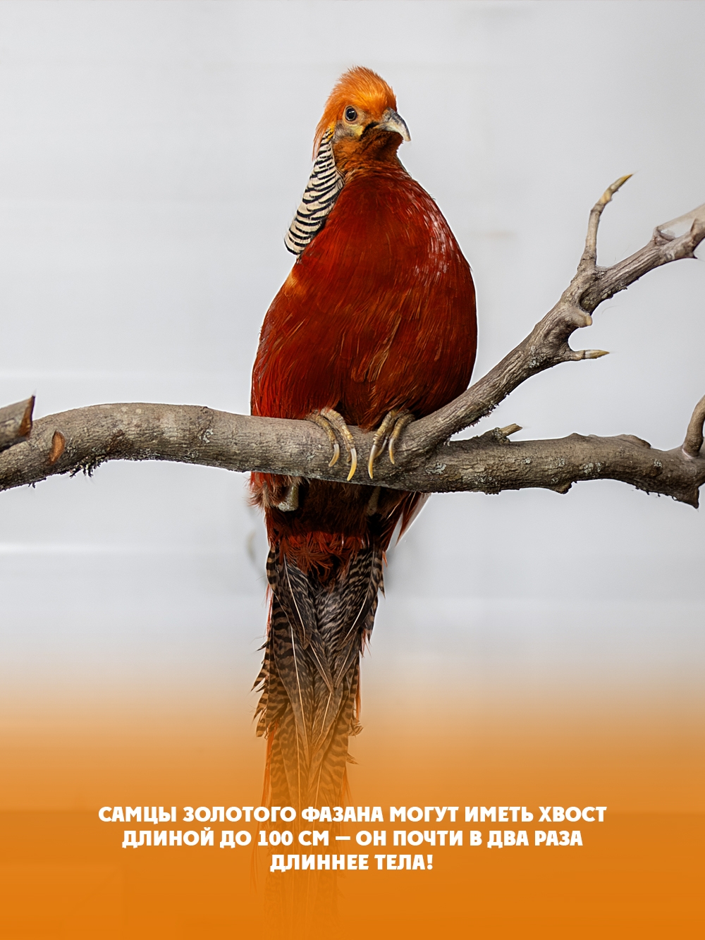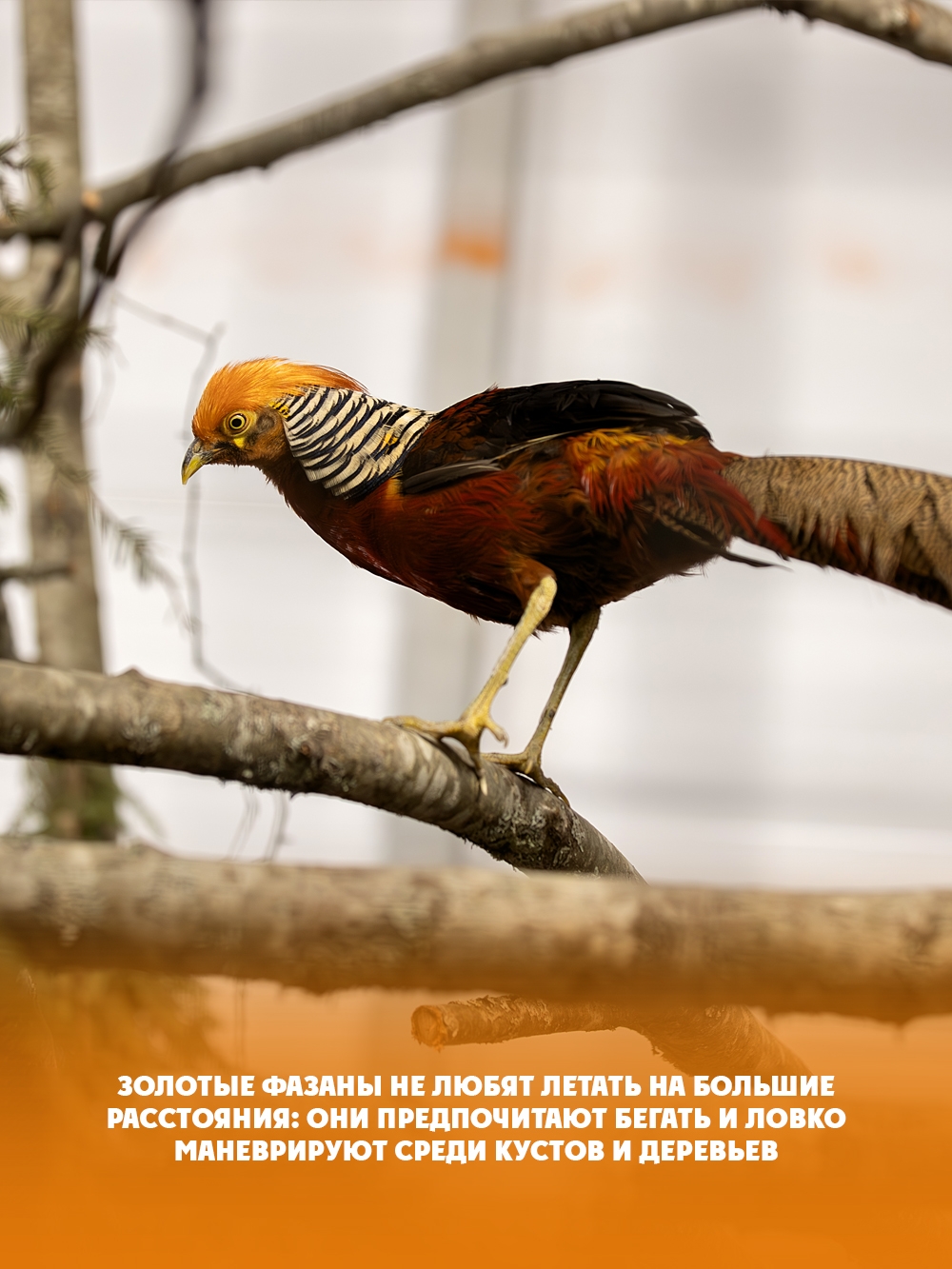 Золотой фазан — редкая птица, которая сейчас живет в Карельском Зоопарке. Она похожа на персонажей волшебных сказок. Оперение золотого фазана переливается всеми оттенками золота, оранжевого и красного. Длинный хвост напоминает роскошную мантию.