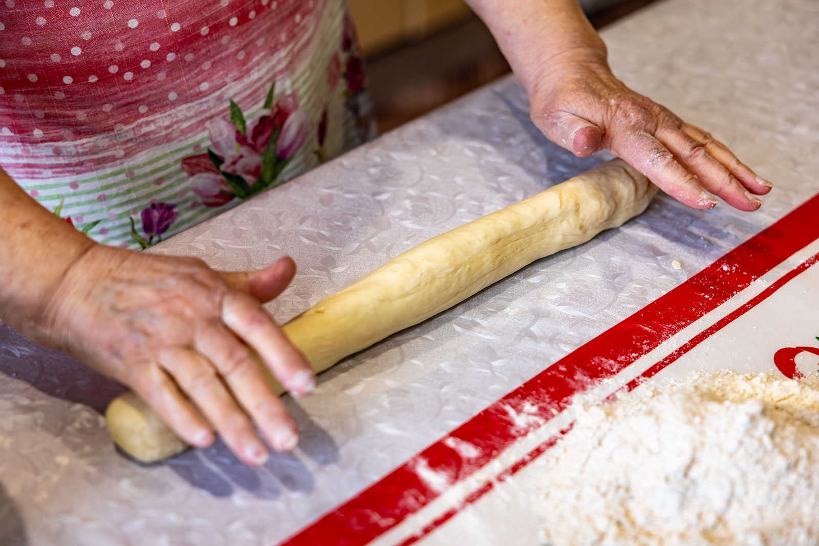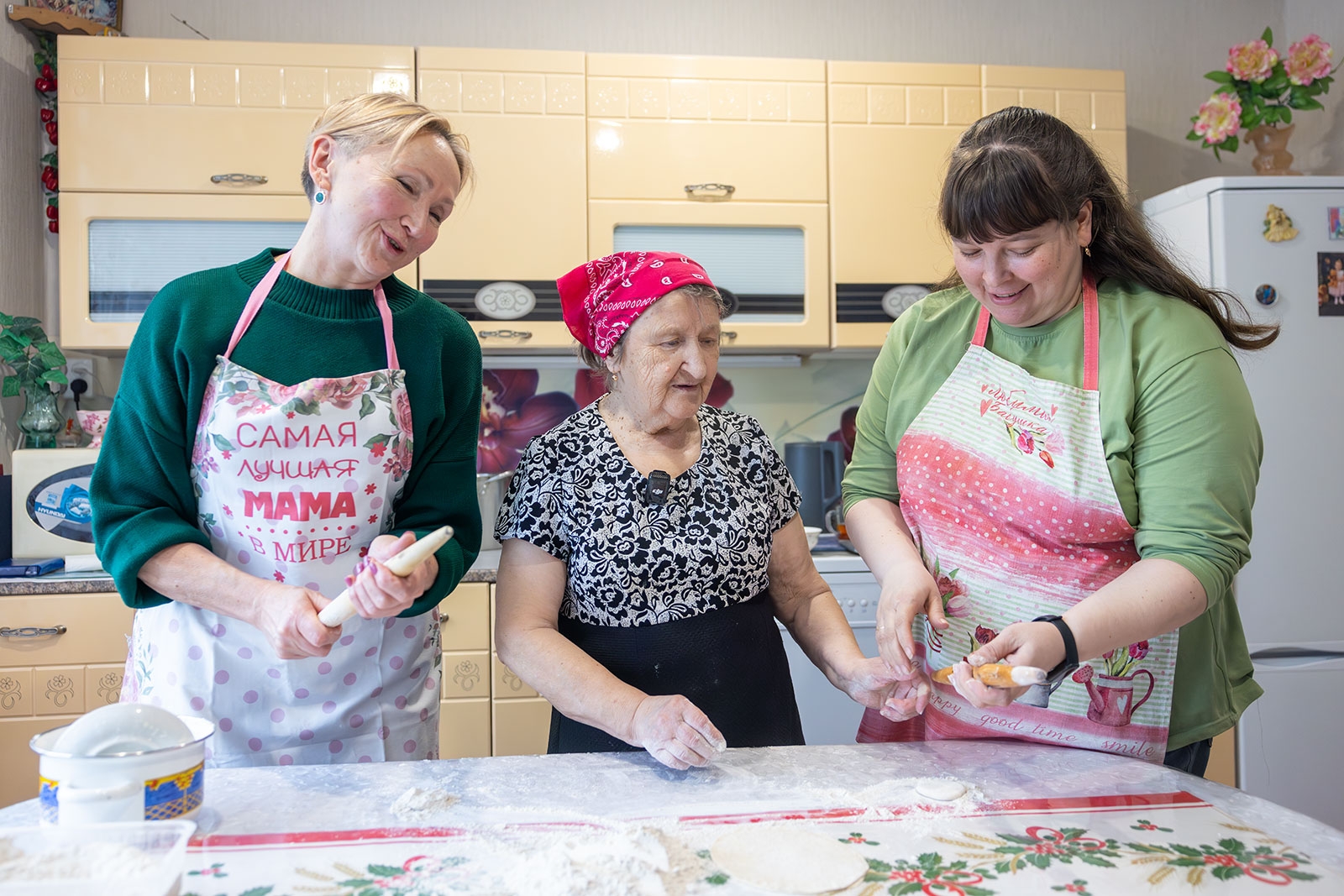Тесто, как по велению фокусника, появилось у неё между ладошек, а в следующее мгновение — это уже были раскатанные сканцы для калиток. Одновременно созревало тесто для рыбника. Участницы экспедиции, которые считают себя тоже знатными хозяйками, попросились в кадр — тоже показать своё мастерство. Однако при всём желании таких ровных калиток-лодочек, как у Клавдии, у наших не получалось, — рассказал Илья.