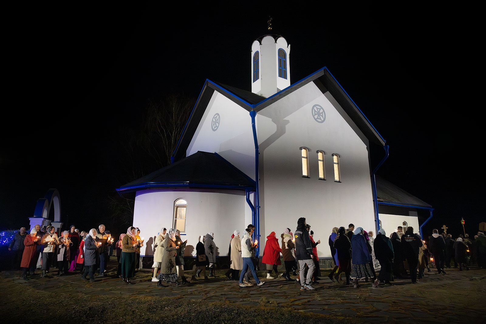 Команда «пилигримов» отправилась на праздничную службу в Спасо-Преображенский храм села Спасская Губа, где настоятелем является иерей Петр Кирьянов. Журналист был поражен количеством верующих: храм был переполнен, а во время крестного хода вокруг здания образовалось почти спложное кольцо из людей, что стало ярким свидетельством живой веры в регионе.