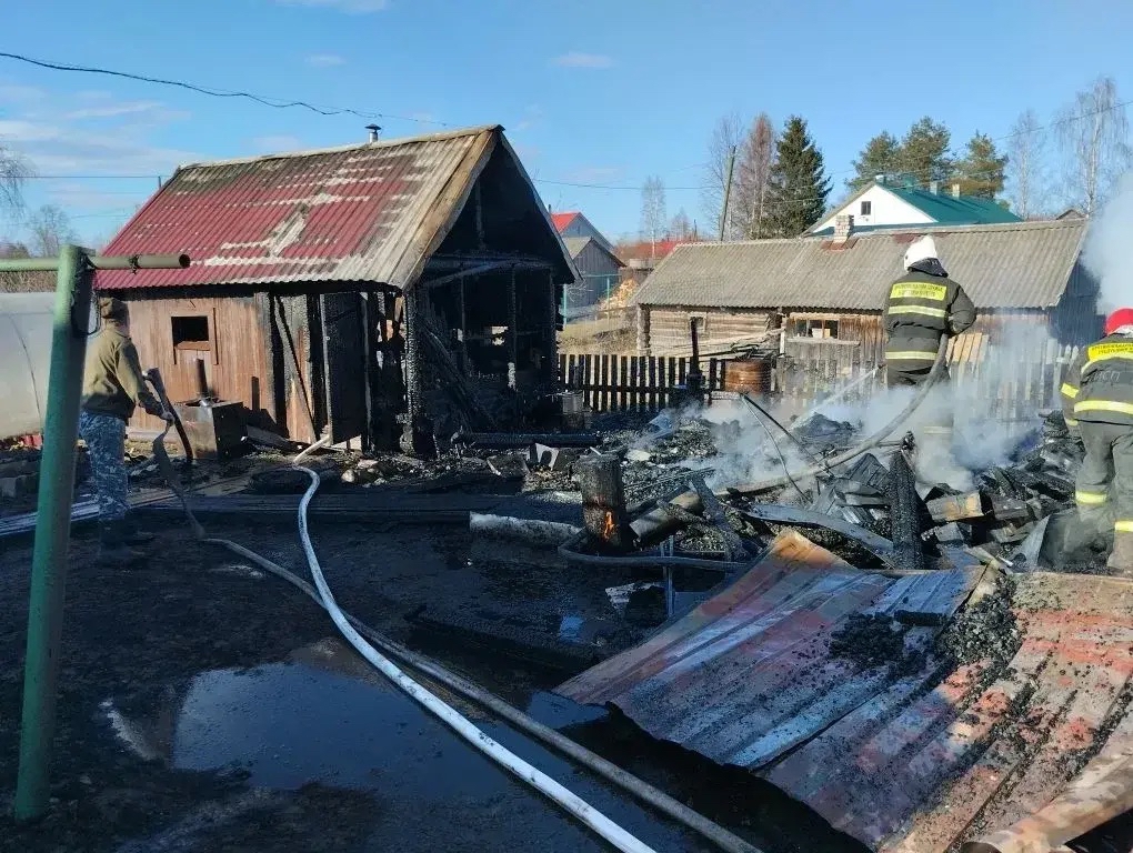 Пожар произошел в минувшее воскресенье, 12 апреля, в 15.50 в переулке Серова в деревне Коткозеро. Там загорелись хозяйственная постройка и баня.
