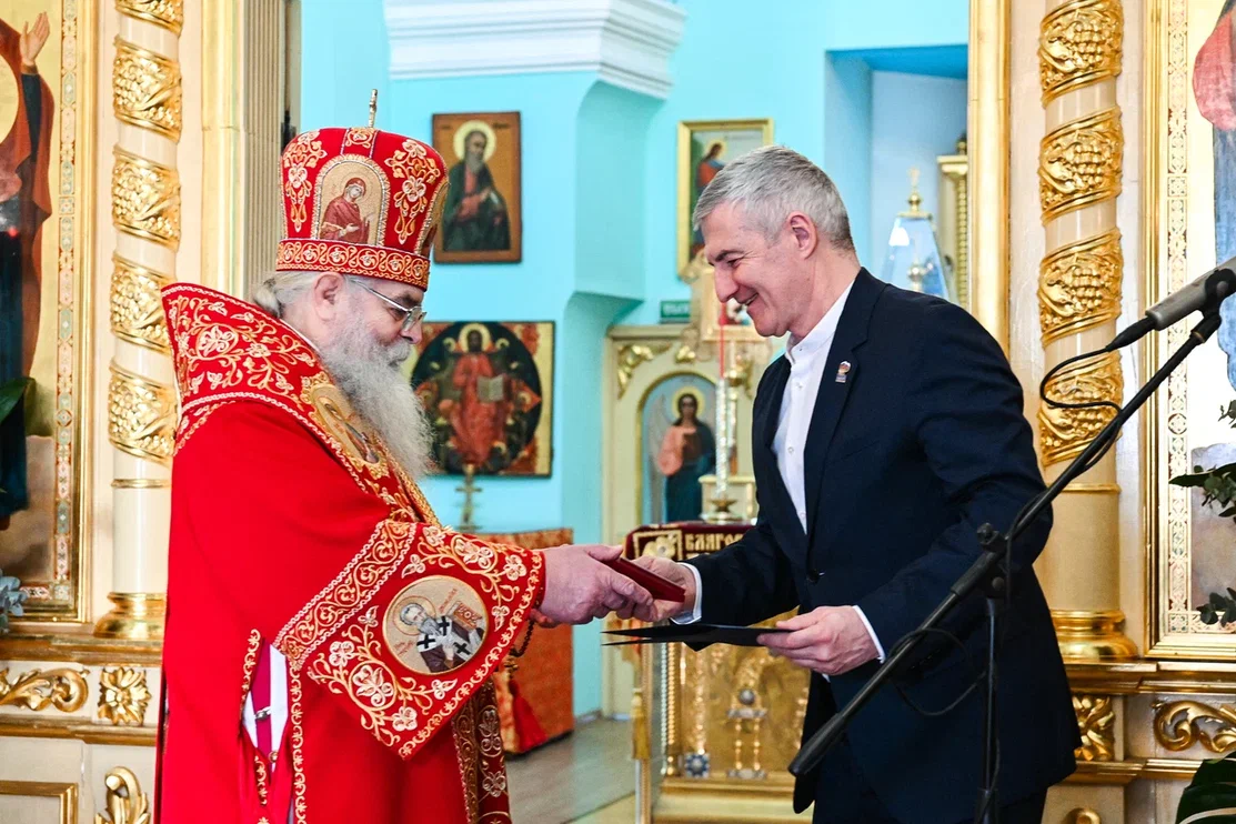 Глава Карелии вручил медаль «За заслуги перед Республикой Карелия» Митрополиту Петрозаводскому и Карельскому Константину за укрепление государственно-конфессиональных отношений и межконфессионального согласия, веры и духовно-нравственных ценностей.