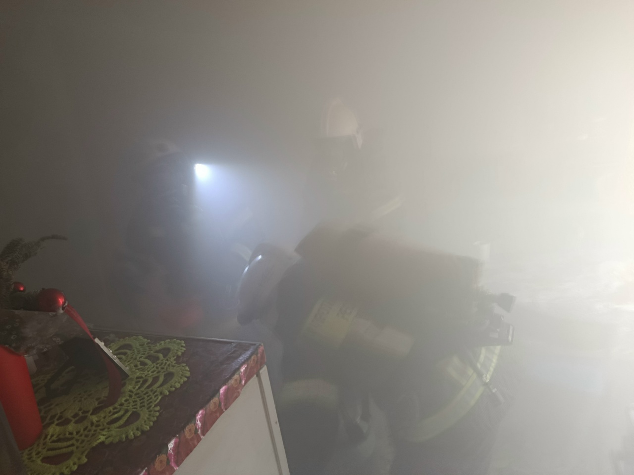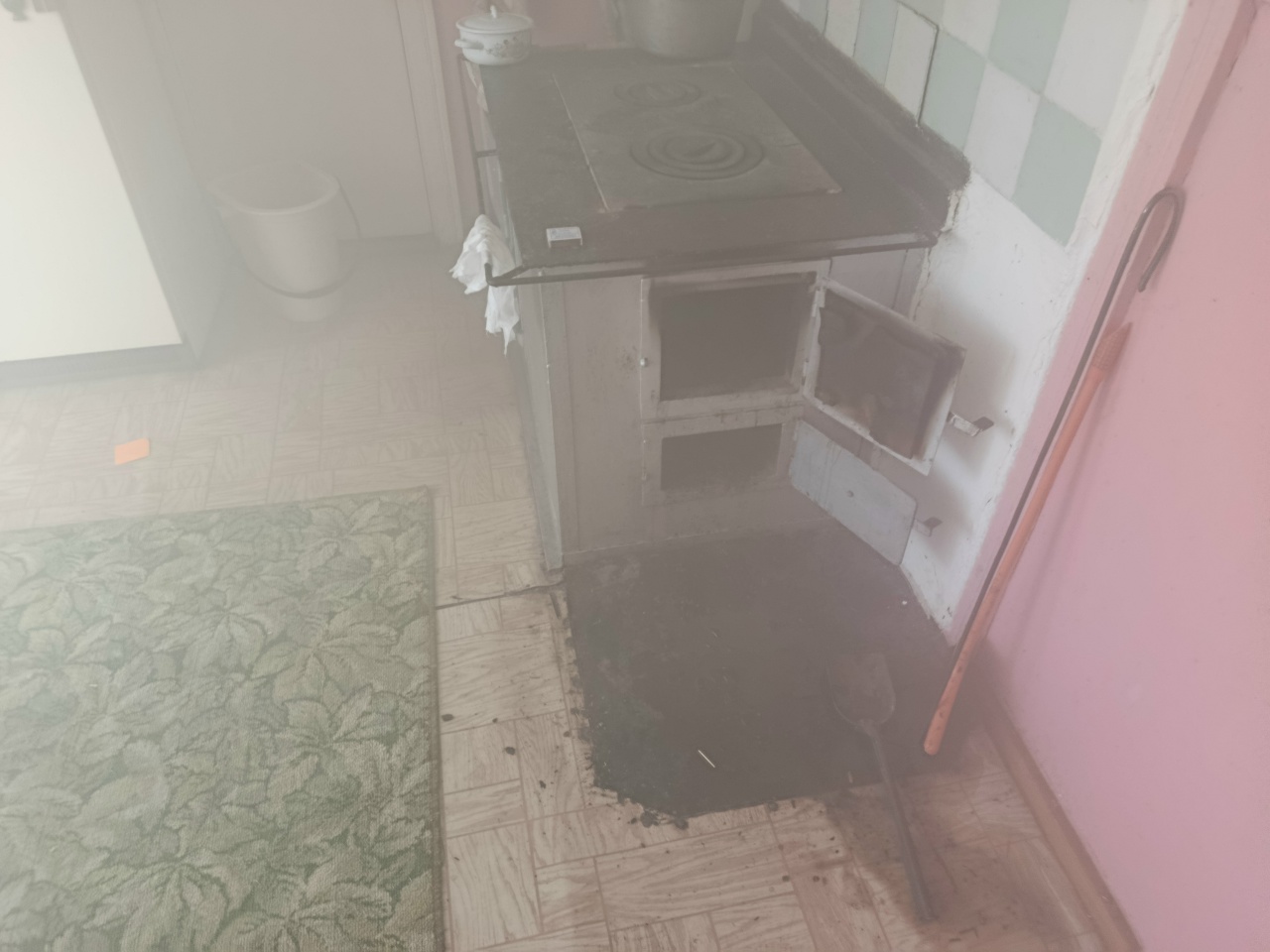 Используя дыхательные аппараты со сжатым воздухом, огнеборцы провели разведку и установили, что задымление возникло из-за неправильной эксплуатации домашней печи.