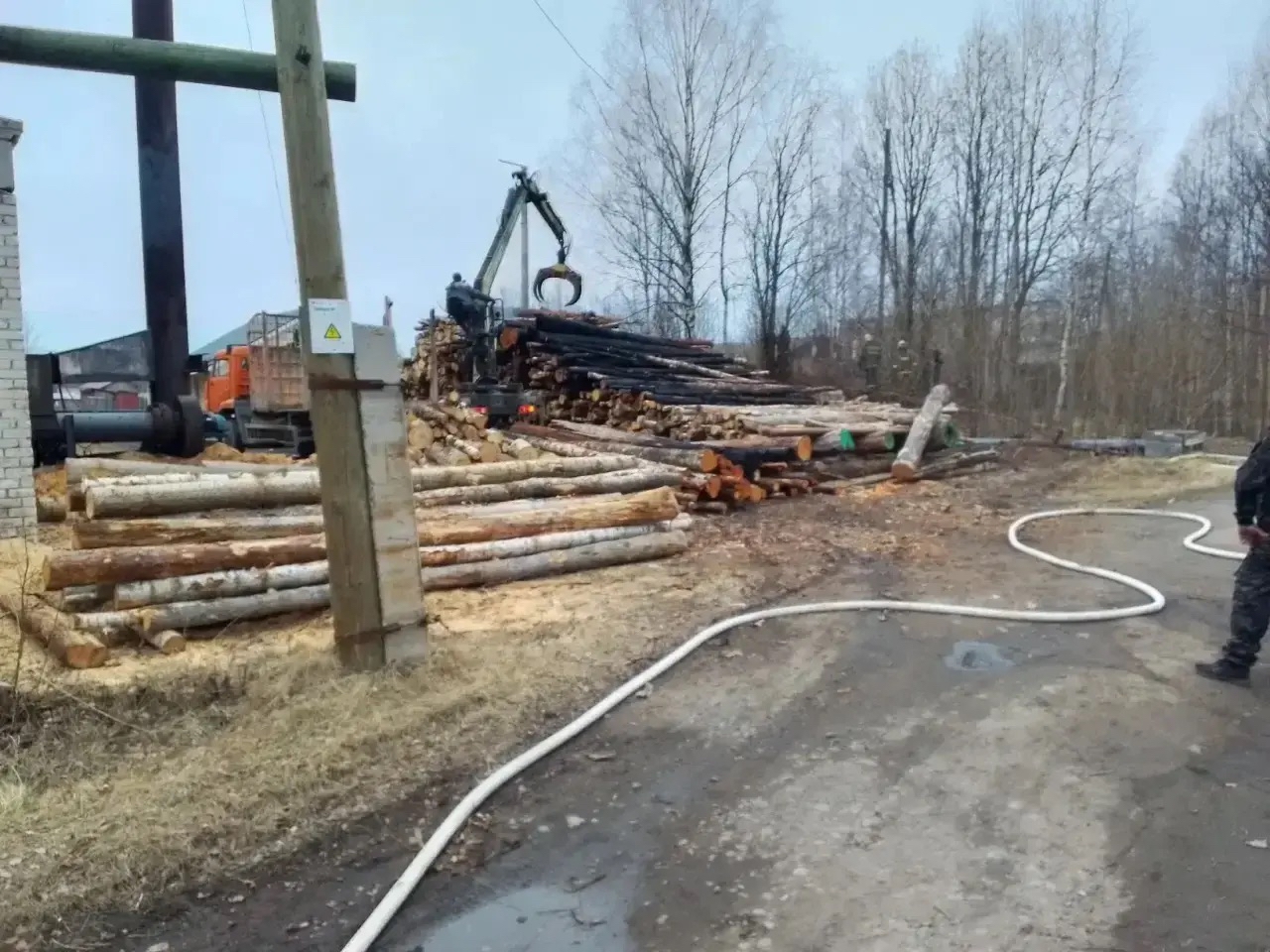 Пожар произошёл в среду, 15 апреля. Огнеборцам сообщили о возгорании сажи в трубе котельной в поселке Калевала. От сажи воспламенился штабель дров.