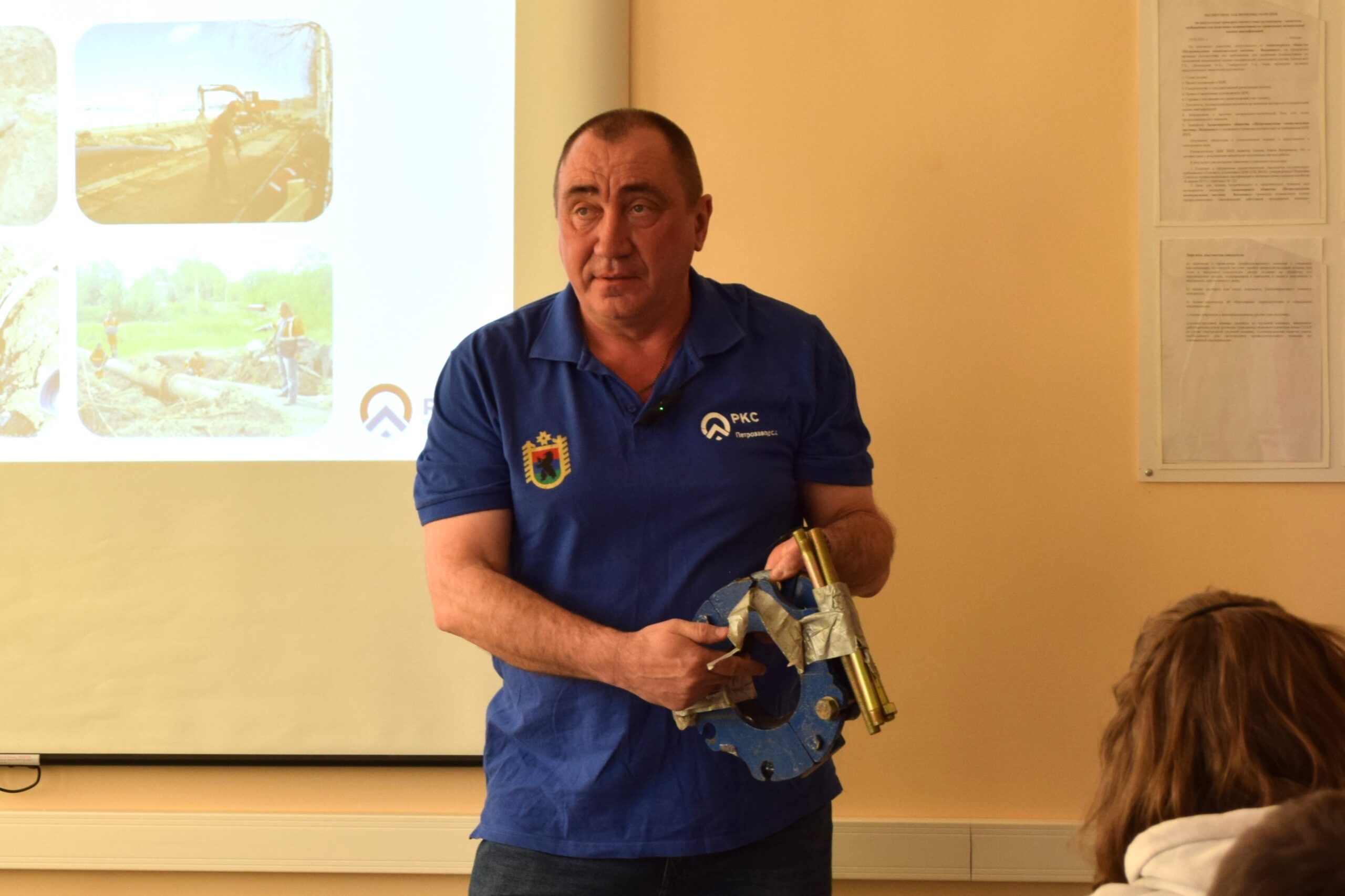 Слесарь аварийно-восстановительных работ «ПКС — Водоканал» Андрей Адасенко встретился со студентами 2 курса Петрозаводского архитектурно-строительного техникума и подробно рассказал о профессии слесаря.