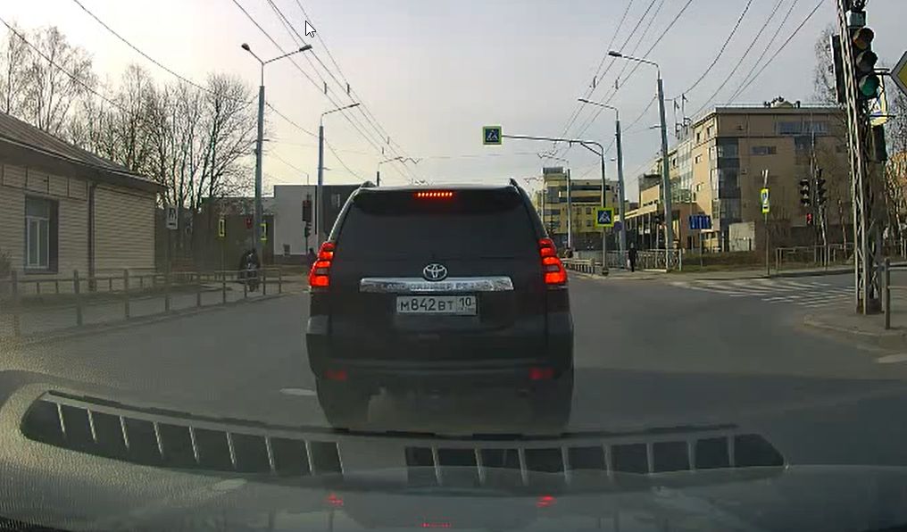 Дорожный инцидент произошёл в среду, 15 апреля, в 07.06 в центре города. Автомобиль Toyota ехал перед машиной автора видео по улице Кирова в сторону проспекта Ленина.