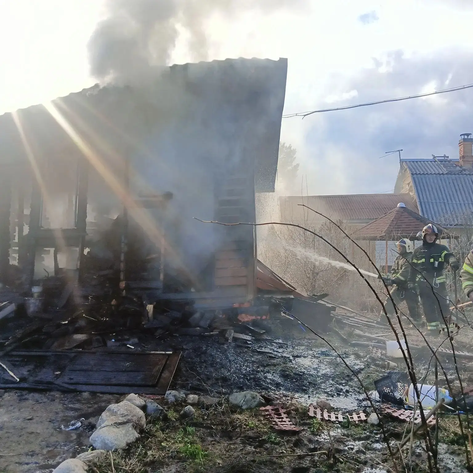 Ранее сообщали о том, что два дома и хозпостройки горят в Прионежском районе.