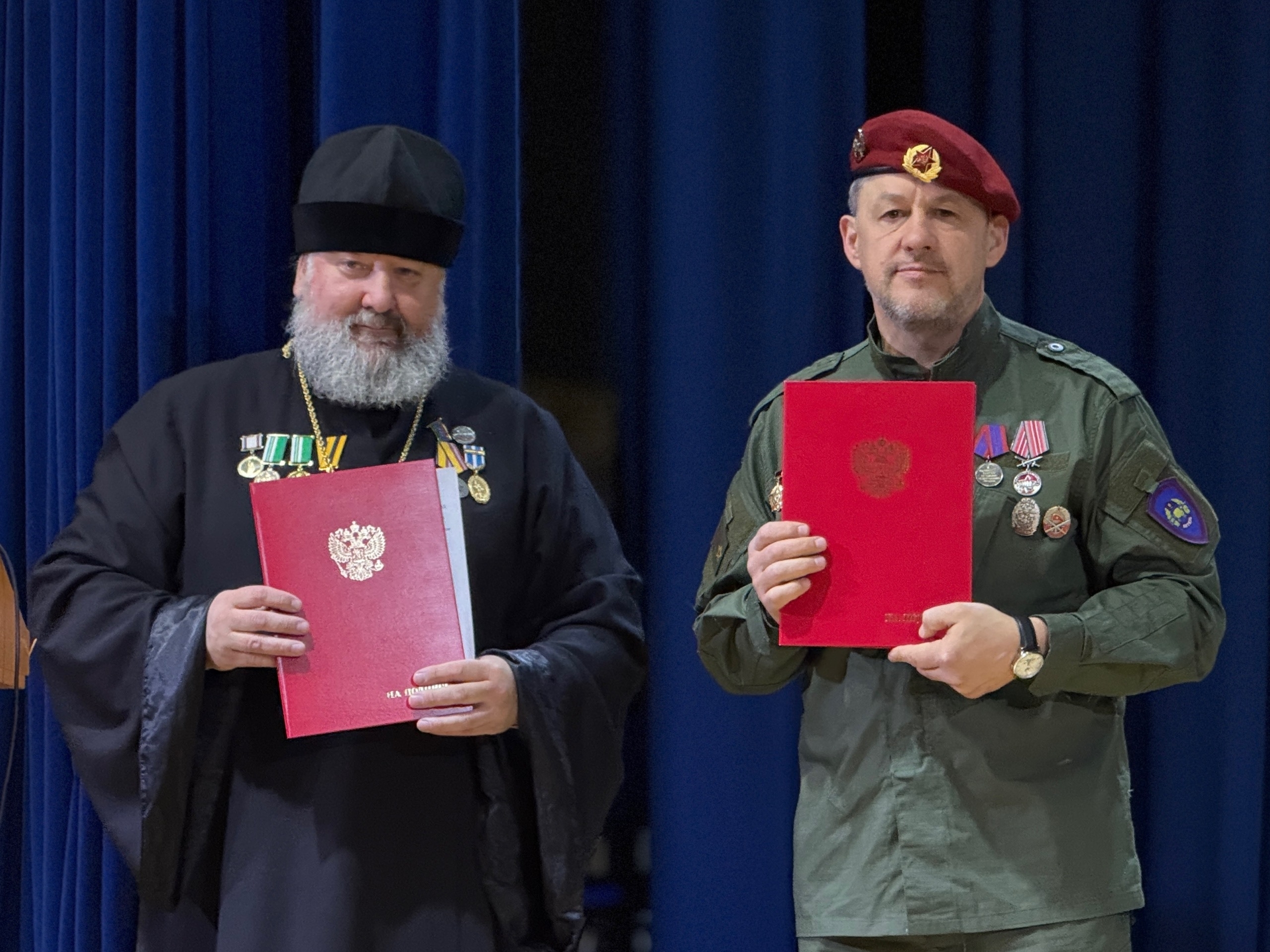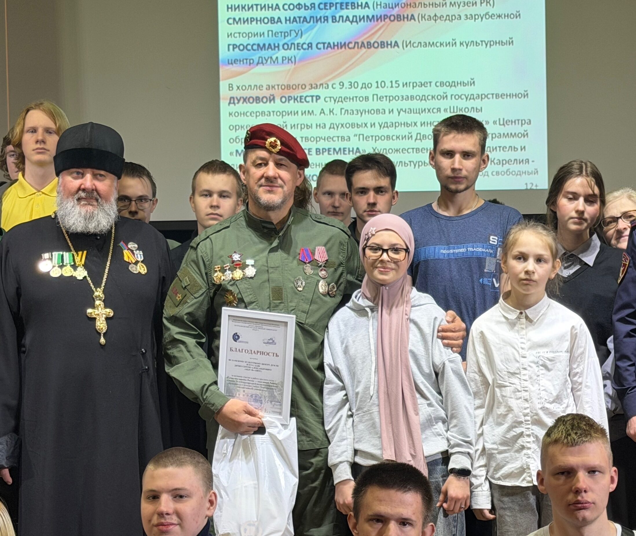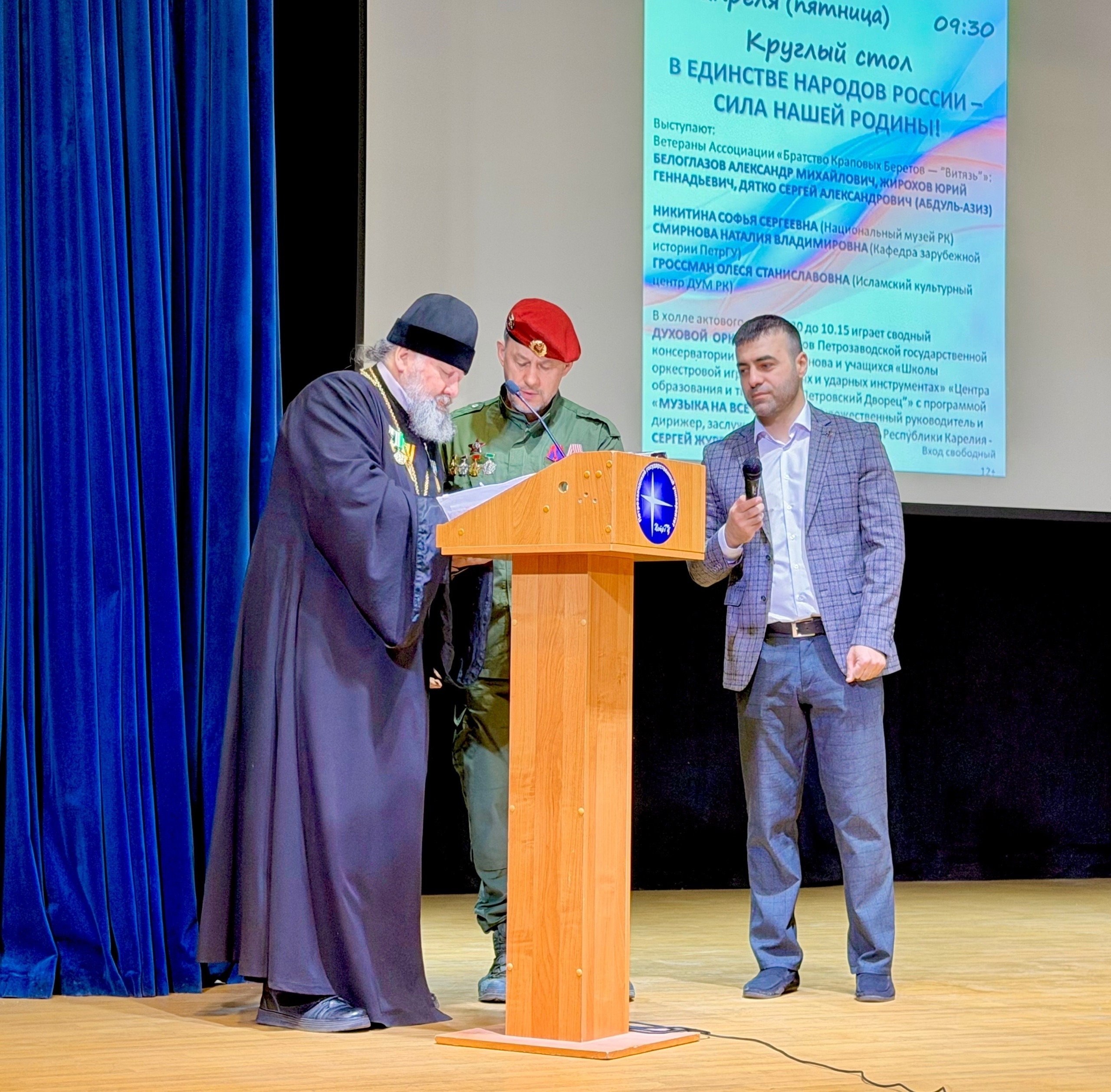 Гостей поприветствовал офицер Управления Росгвардии Карелии. Председатель ассоциации «Краповых беретов» Республики Карелия Сергей Дядко (Абдуль Азиз) и председатель ассоциации СВО по Республике Карелия отец Леонид подписали межнационально соглашение о духовной поддержке морального духа участников СВО.