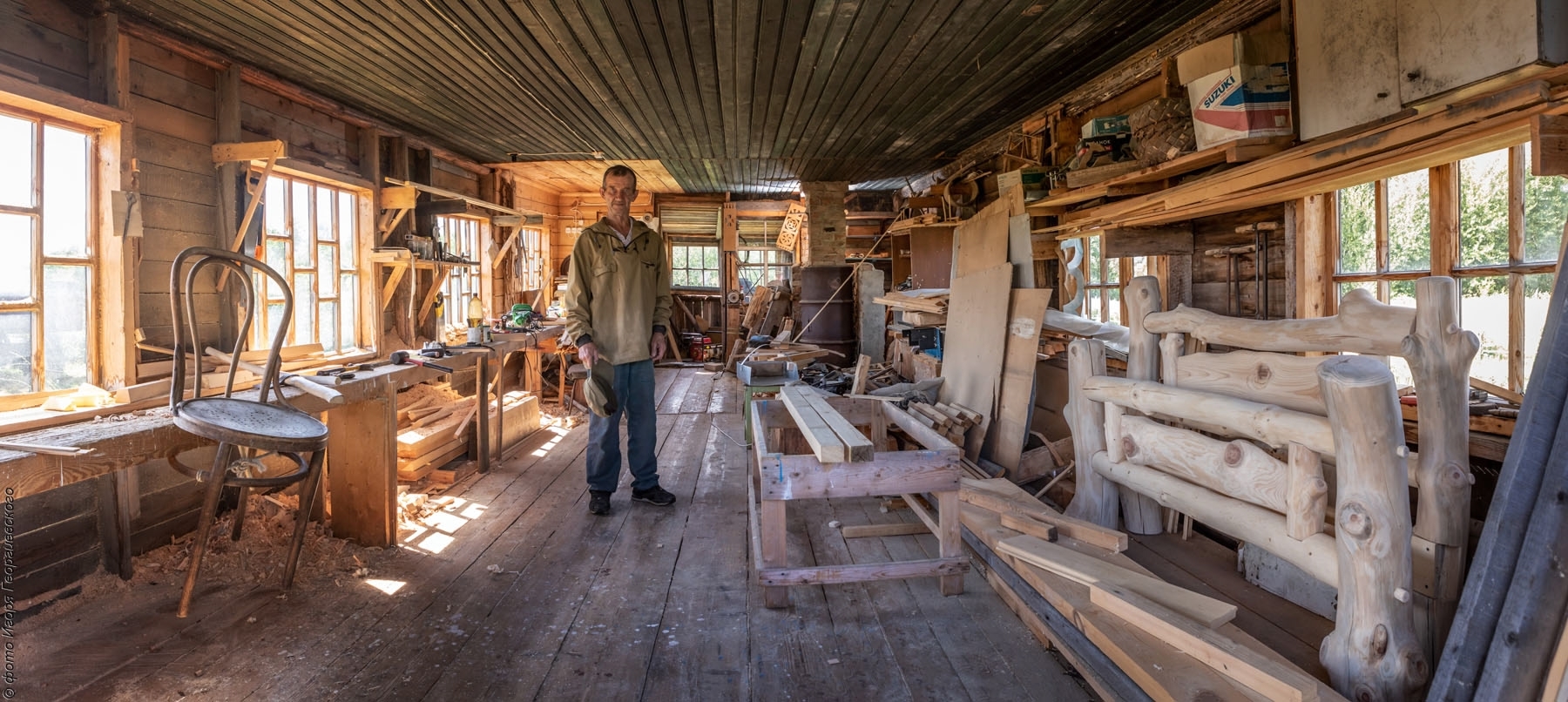 Иван Степанов из деревни Посад отметил сегодня свое 75-летие. Коллеги отмечают, что он похож на мастера Нестора, который, по приданию, с помощью одного топора построил Преображенскую церковь на острове Кижи.