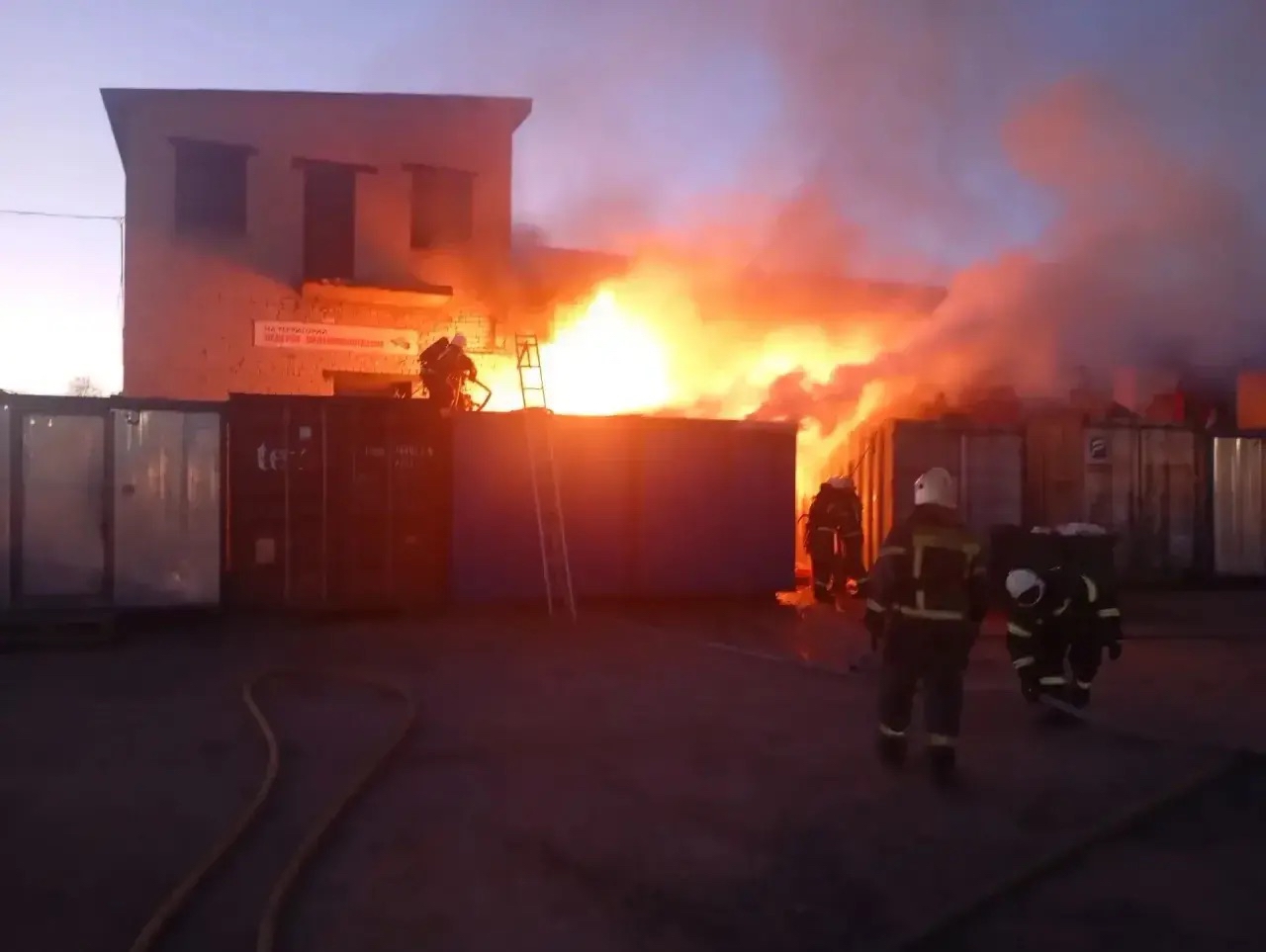 Выяснилось, что горит рабочая бытовка по всей площади, а также строительные материалы — полипропиленовые гофрированные трубы, расположенные на крыше бытовки и рядом с ней. Огонь перекинулся на оконные рамы и крышу соседнего бокса.