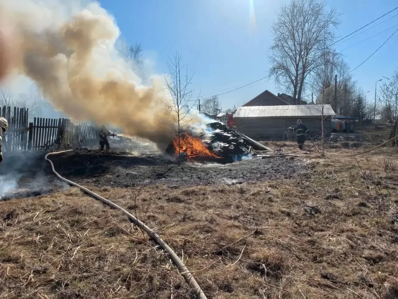 Жилые дома были спасены. Люди на пожаре не пострадали, рассказали в Госкомитете.