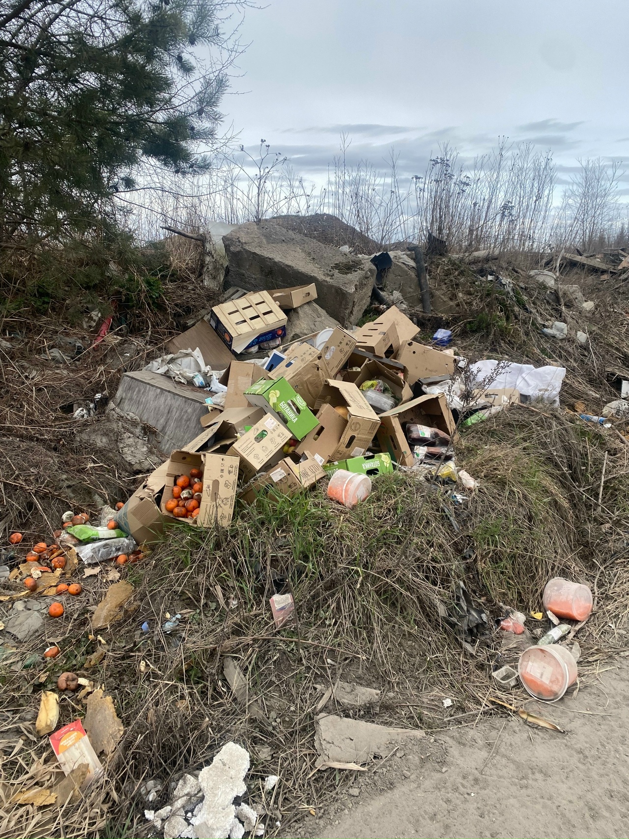 В отдаленном районе города выросли горы коробок с нетоварного вида продуктами.