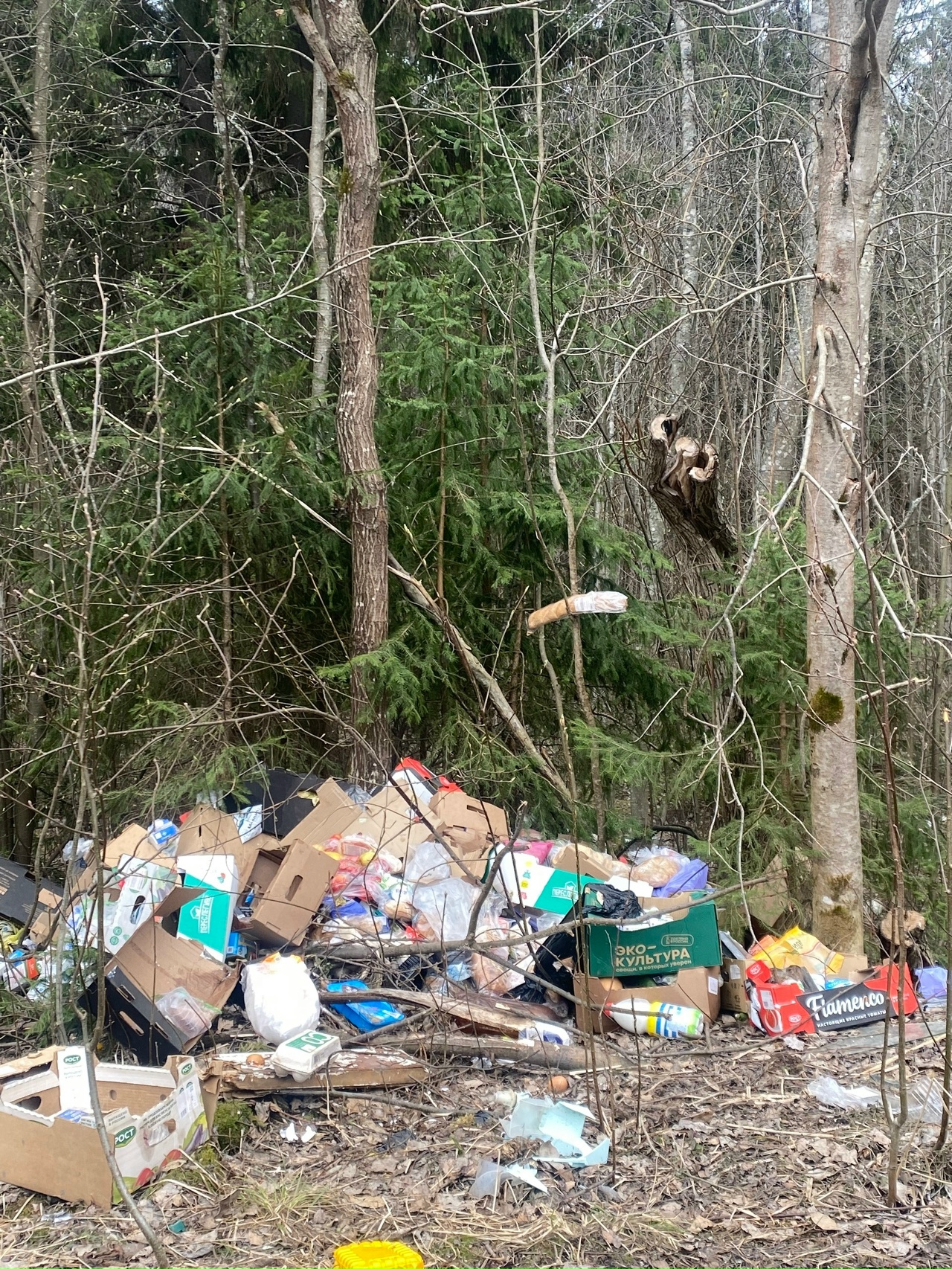В проезде Дорожников, в направлении завода «Калевала», начали сваливать просроченные продукты, сообщил паблик «ТОС СОЛОМЕННОЕ».