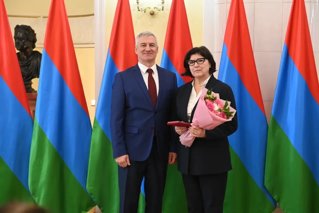 Глава Карелии Артур Парфенчиков присвоил почётное звание «Заслуженный деятель науки Республики Карелия» заведующей лабораторией Института геологии Карельского научного центра РАН Наталье Рожковой.