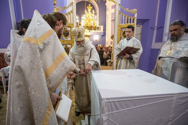 В любом случае историческая тайна раскрыта и новый престол стоит на месте. Вместе с тем в храме закончилась большая часть реставрационных работ, начатых в августе 2018 года. Очищены от старой краски и покрашены стены и купол. В куполе храма написан четырехметровый Крест Господень. Также смонтирован тепловой узел учета. По всему храму установлены новые чугунные батареи, сообщили в епархии.