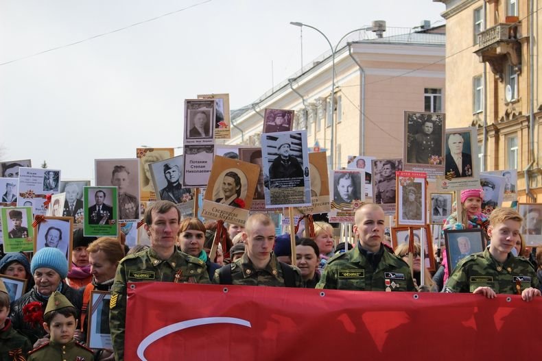 На акцию «Бессмертный полк» можно прийти с фотографией своего родственника-фронтовика или специально изготовленным транспарантом с изображением и краткой информацией о нем.
