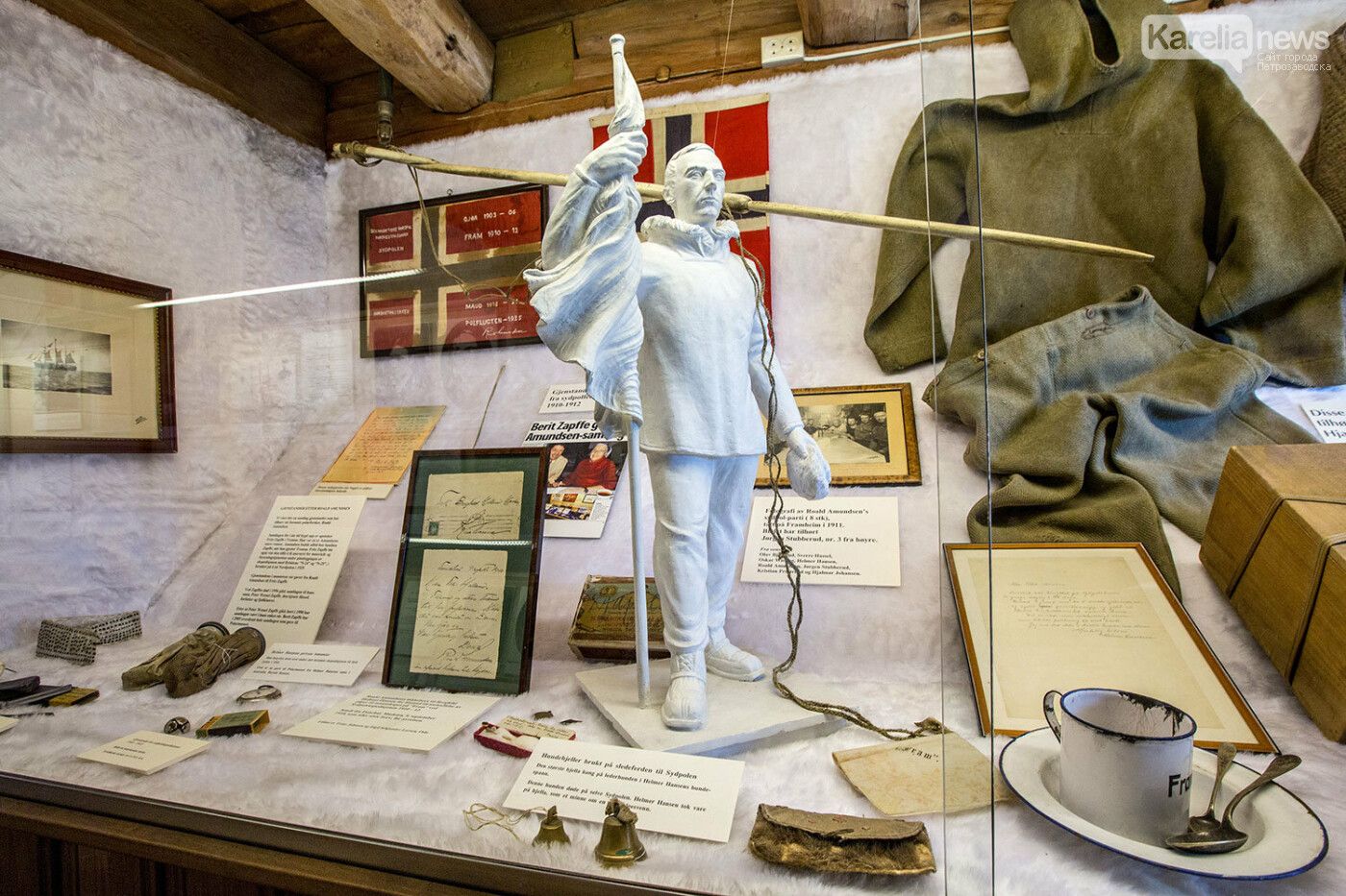 Амудсен для Норвегии идол. Для Тромсё, откуда он начинал свои походы, особенно. Ему в городе установлен памятник. Первый человек, достигший Южного и Северного полюсов, первый путешественник, совершивший морской переход Северо-Западным проходом. Первый человек, замкнувший кругосветную дистанцию за Полярным кругом. Стоит ли удивляться, что в Полярном музее очень многие экспонаты посвящены экспедициям великого путешественника.