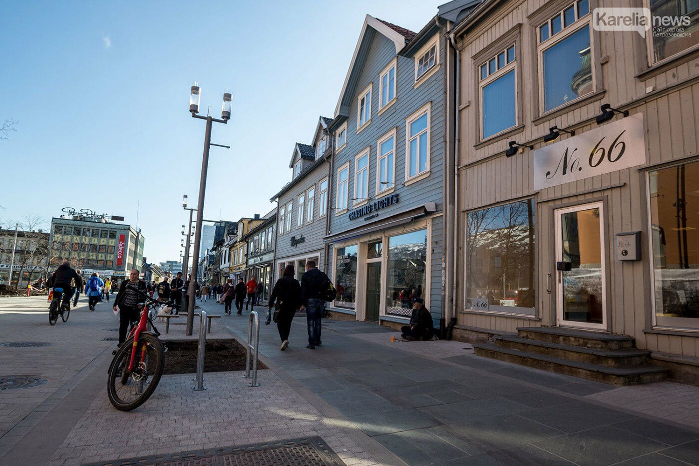 В Петрозаводске, помните, пытались снести красные деревянные здания напротив гостиницы «Северная». Здесь с таких домов пылинки сдувают и гордятся ими. И здесь их много, особенно в историческом центре. Когда-то у нас в Петрозаводске удалили брусчатку, заменив ее бездушным асфальтом, здесь же каждый камешек брусчатки ухожен и облизан. Крутые повороты улиц между историческими зданиями, уличные фонарики, вывески на домах, навесы над входами в дома, поребрики и сливы для дождевой воды – здесь все подчинено одной идее сделать Тромсё еще краше, еще уютнее, еще красивее.