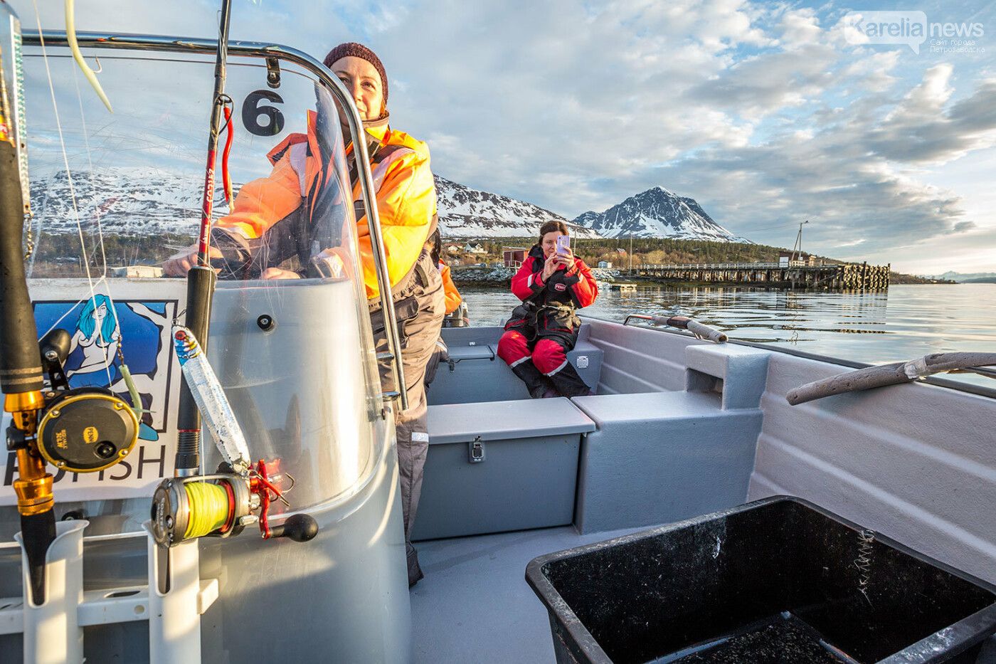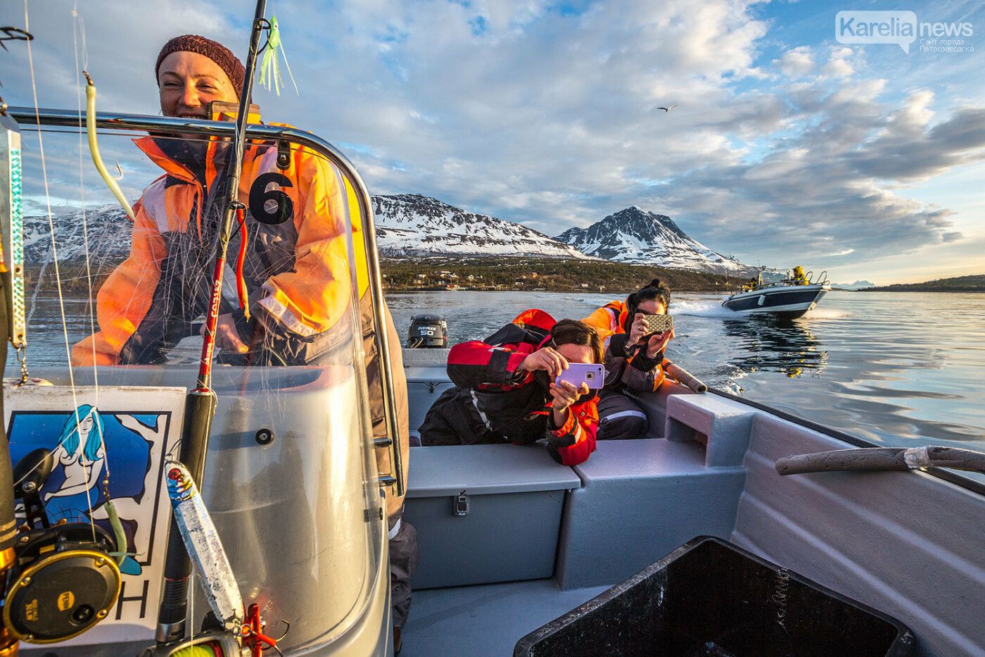 Итак, в один прекрасный солнечный майский день мы отправились искать Его величество. Поехали двумя экипажами – мальчиков и девочек. Катя с подругами в одной лодке, и мы, карельские путешественники, в другой. Хотя вру. С девочками отправили нашего видеографа Максима Носова. Мы знали, что палтуса поймаем мы, мы ведь рыбаки, но для красоты картинки решили, что в кадре должны быть прекрасные рыбачки, а не наши небритые физиономии. А потому пускай. Да и снимать, как мы тащим палтуса, лучше с другой лодки.