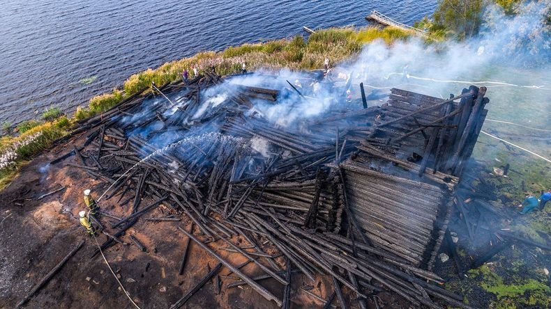 Успенская церковь, один из главных памятников русского деревянного зодчества, сгорела год назад, 10 августа 2018 года. По подозрению в поджоге был задержан 15-летний подросток. Суд освободил несовершеннолетнего от уголовной ответственности и направил на принудительное лечение.