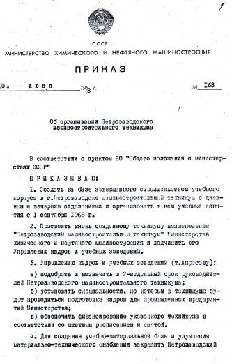 7 октября 1968 года открылся Петрозаводский машиностроительный техникум.