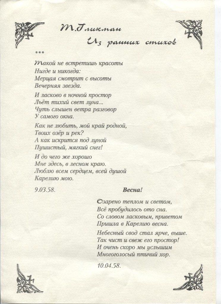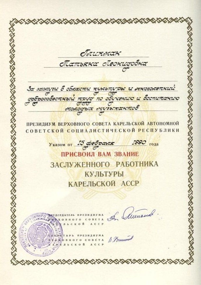 10 декабря 1939 года родилась Татьяна Леонидовна Гликман (1939-1992), дирижер-хормейстер, Заслуженный работник культуры Карельской АССР.