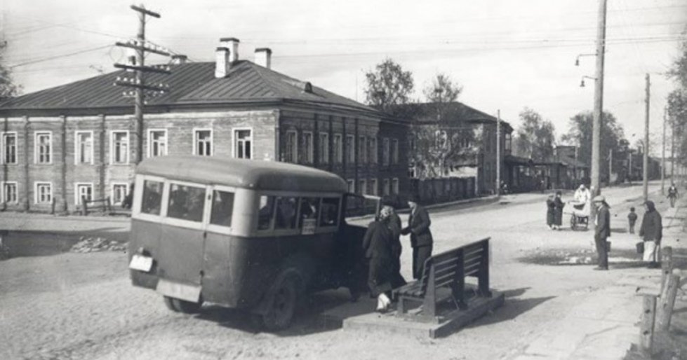 Газета «Красная Карелия», заметка от 23 декабря: «В Петрозаводске автобус впервые появился в 1927 году. Три американских машины «Додж» и один полугрузовой «Фиат» обслуживали и город, и загородные линии. Прошло 7 лет. Из пяти пассажирских автобусов на линии Вокзал-Гостиный двор курсирует две машины и на линии Улица Гоголя-Американский городок — одна машина. Не хватает пассажиров, некого возить, — говорит тов. Китаярви, управляющий Комтреста. Ежедневно у остановок очереди. Иногда ждать приходится по 50 мин. Приедет автобус, возьмет 20 человек, а 40 останутся стоять. С 18 декабря автобусы курсируют до 1 часа ночи, но павильоны до сих пор не построены, до Сулажгоры и пристани автобус не ходит. Когда же будет выполнен наказ трудящихся города?»