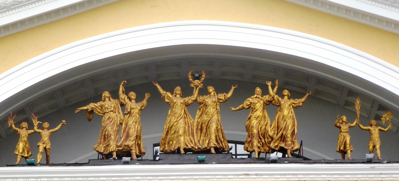 На первых порах здание возводили немецкие военнопленные, а потом его строили всем городом, включая «фабзайцев» — учащихся фабрично-заводских училищ. Это был грандиозный проект в стиле сталинского неоклассицизма.