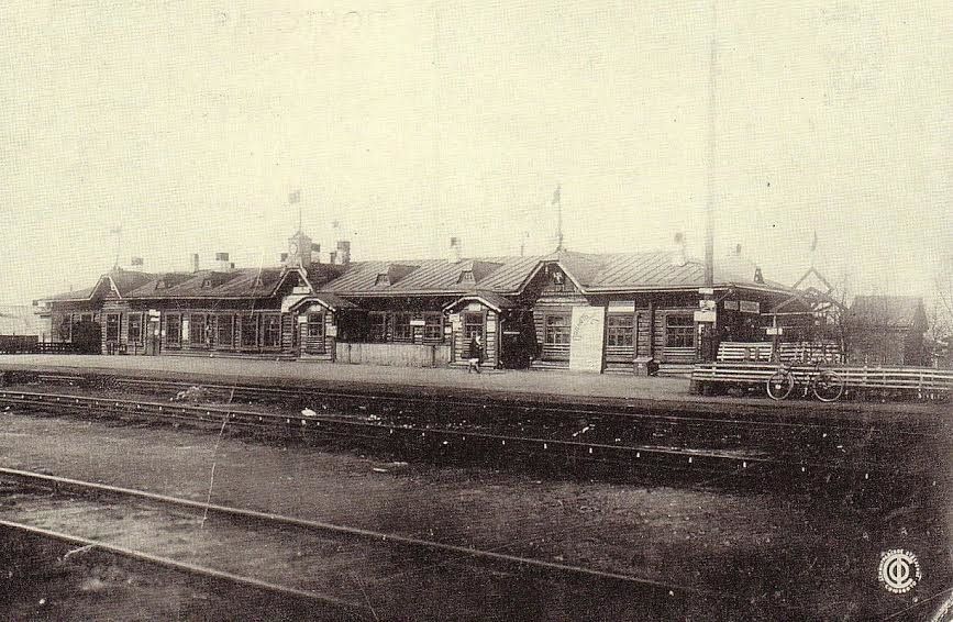 Фото: Станция Петрозаводск, 1915, фото С. Прокудина-Горского. Вокзал станции Петрозаводск до реконструкции, с открытки 1930-х. Здание вокзала после реконструкции 1934 года, 1942.